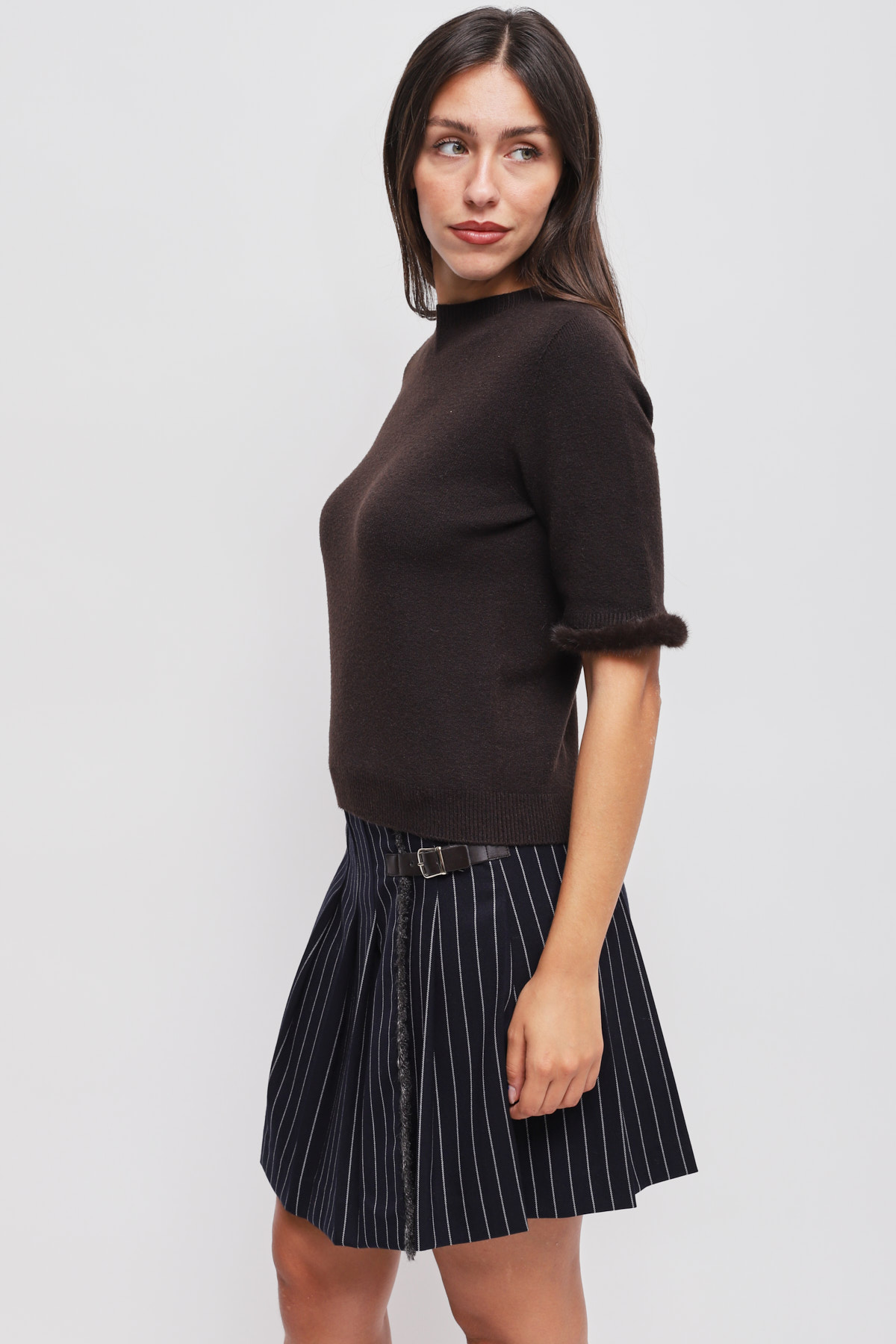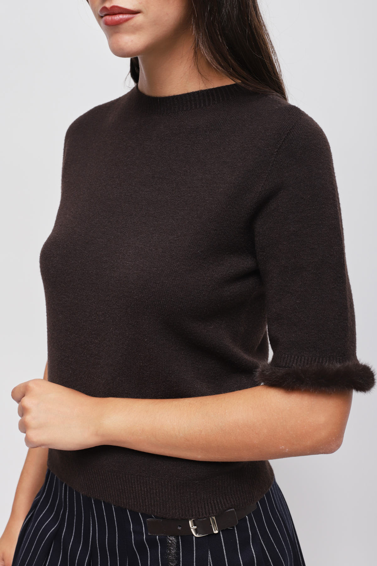 HOME > Promo > CLOTHING > KNITWEAR AND SWEATSHIRTS On sale > MAGLIA A MANICHE CORTE CON DETTAGLIO ECOPELLICCIA