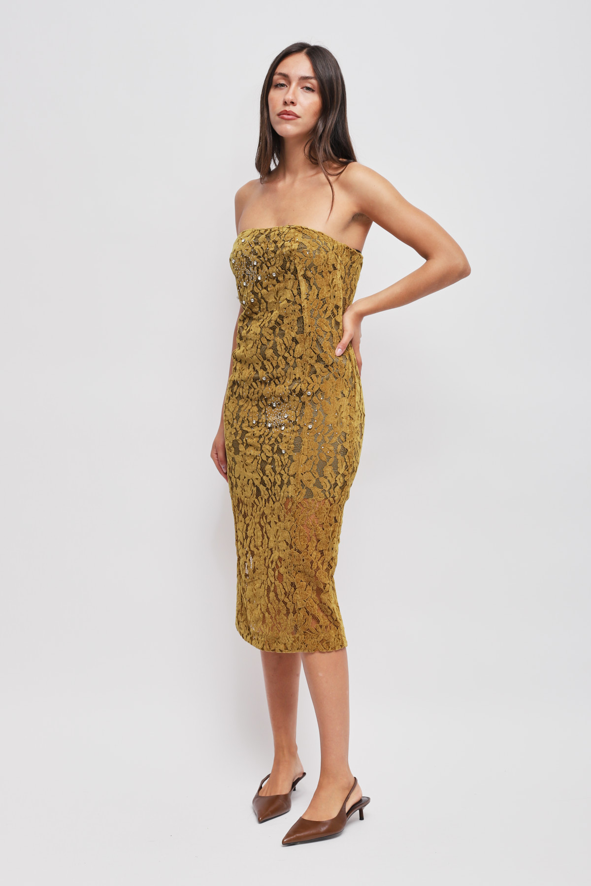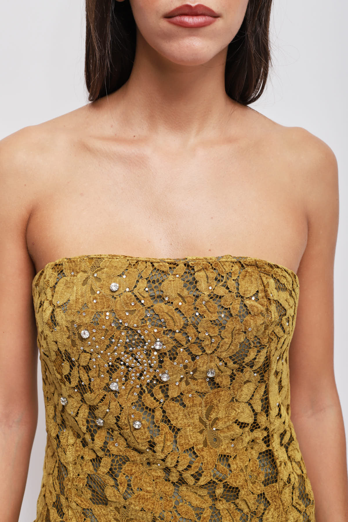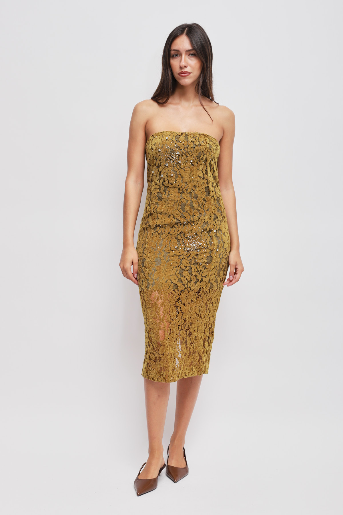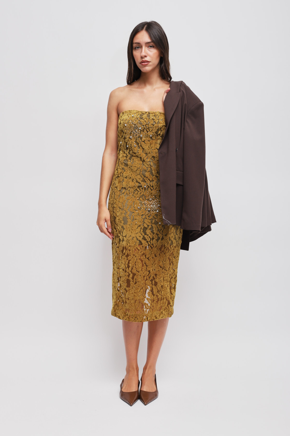 HOME > CLOTHING > DRESSES > ABITO IN PIZZO SENZA SPALLINE CON STRASS