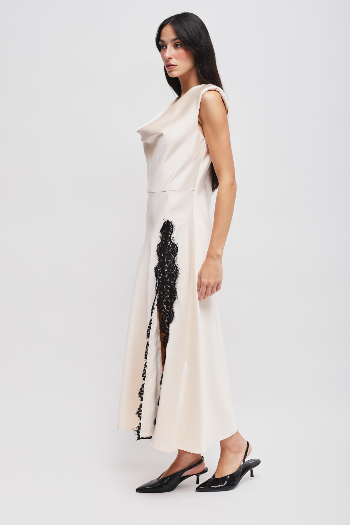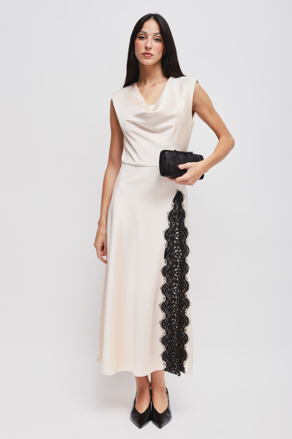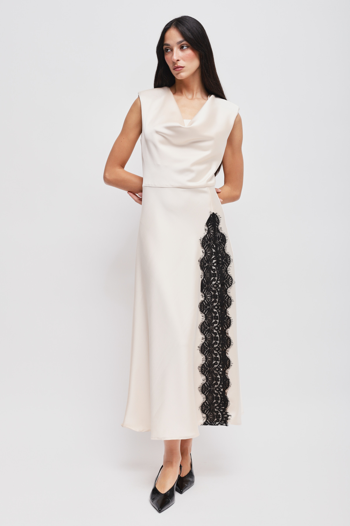 HOME > CLOTHING > DRESSES > ABITO LUNGO IN SATIN CON PIZZO