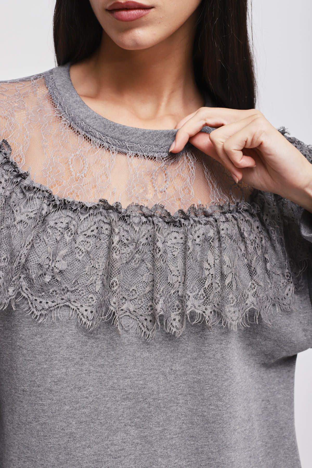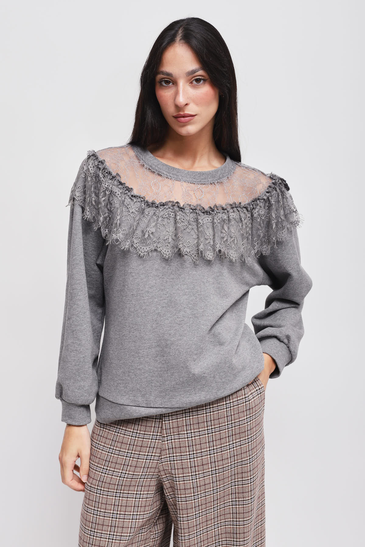 HOME > CLOTHING > KNITWEAR AND SWEATSHIRTS > FELPA CON SCOLLO IN PIZZO