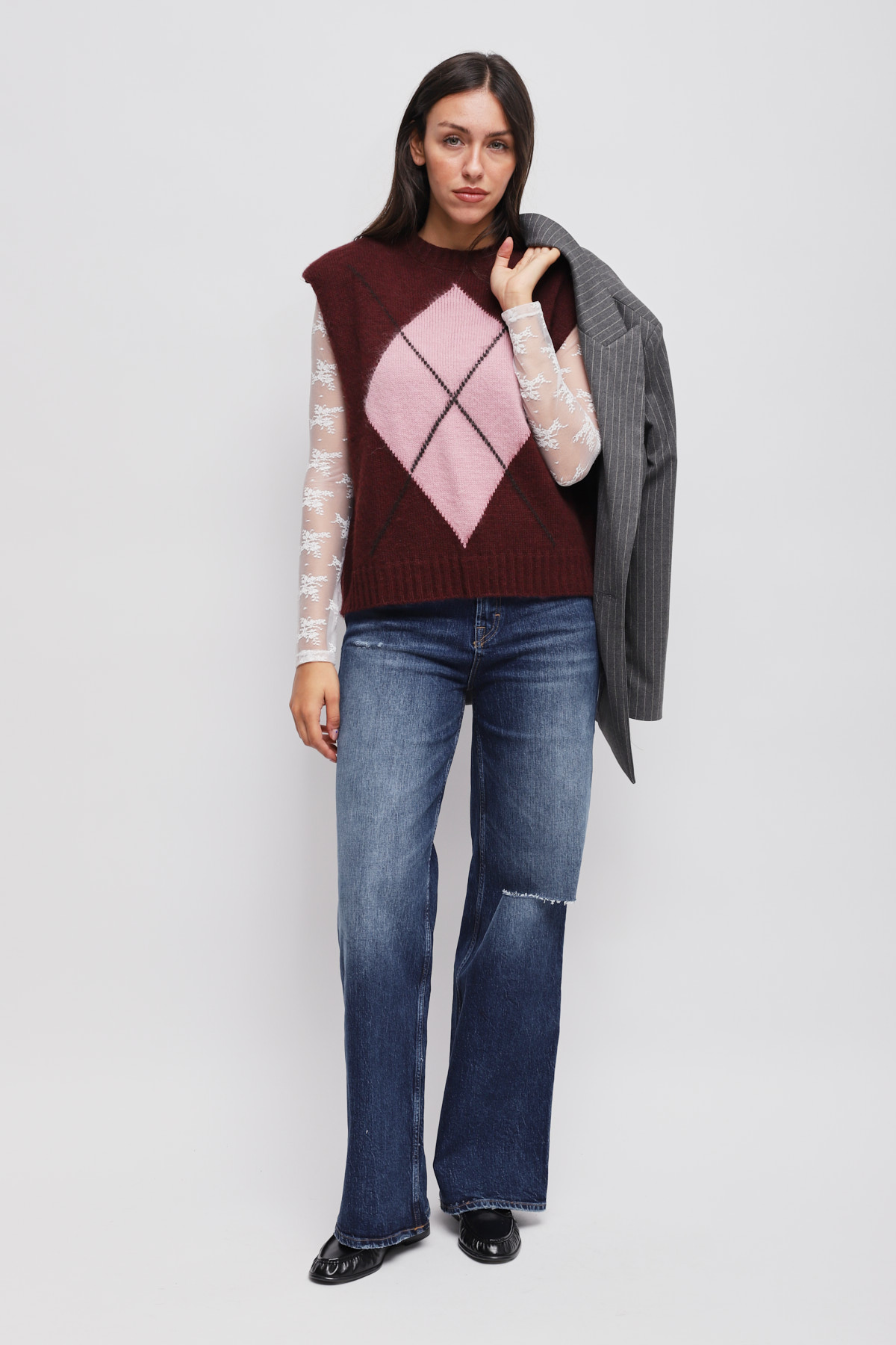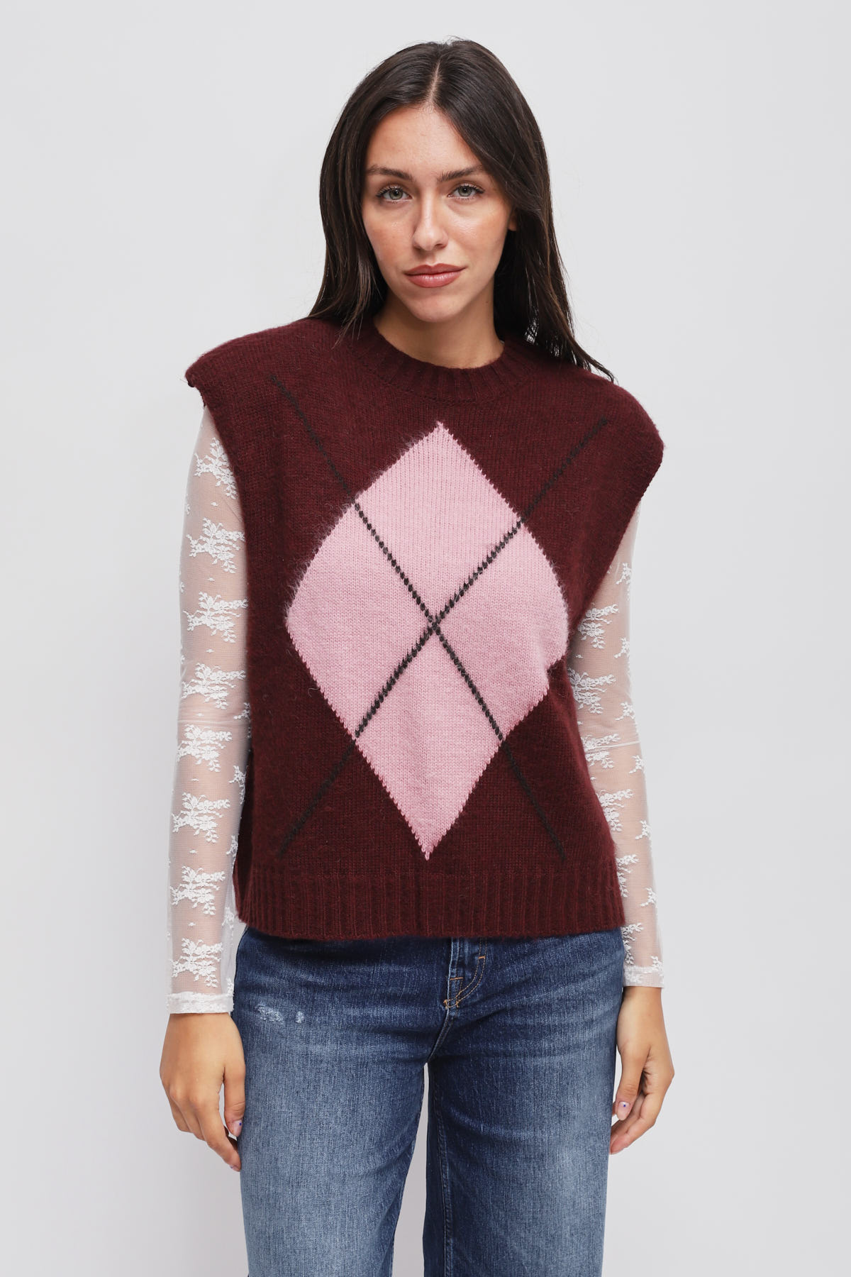 HOME > CLOTHING > KNITWEAR AND SWEATSHIRTS > GILET IN MAGLIA A ROMBI CON SPALLE IMBOTTITE