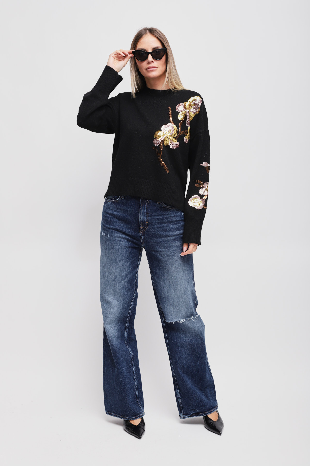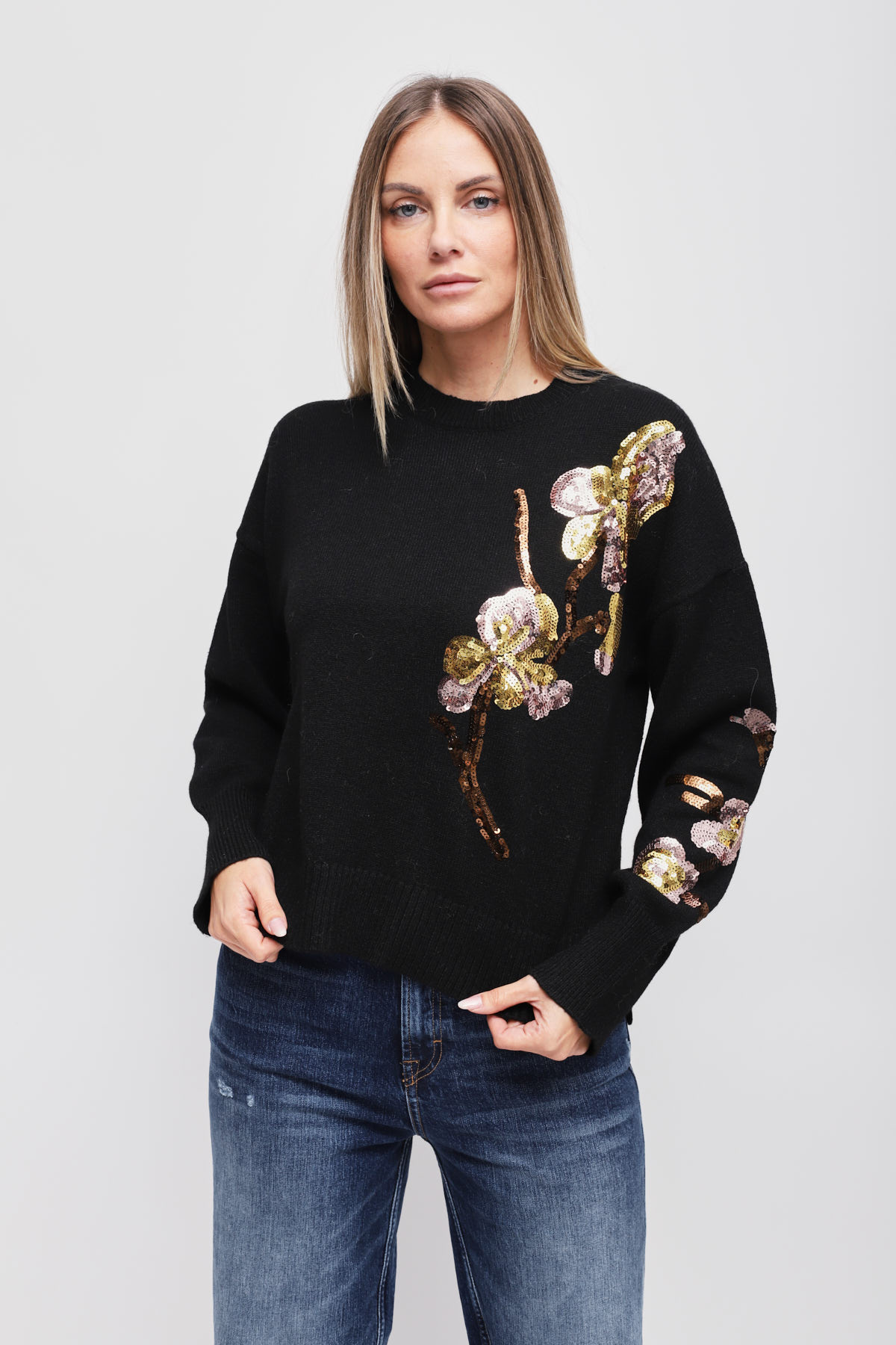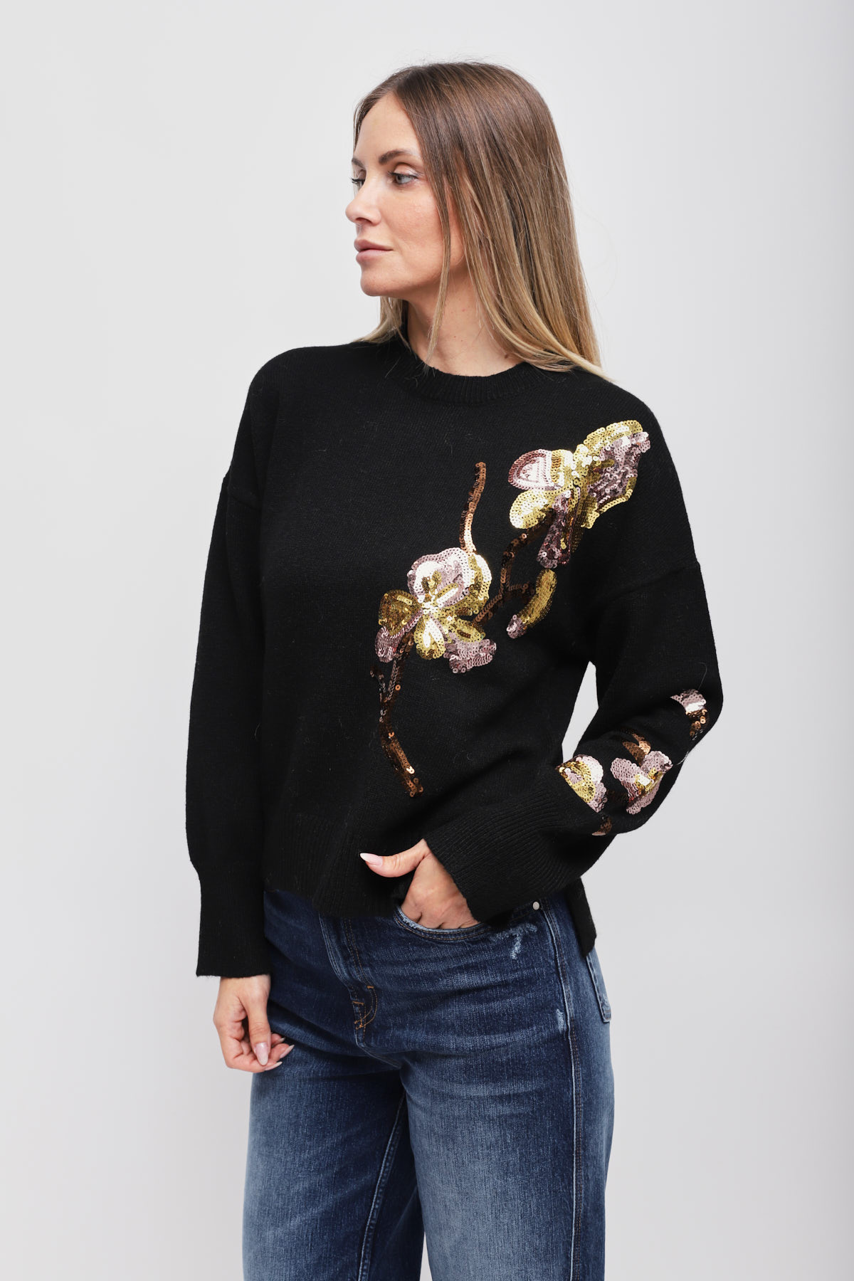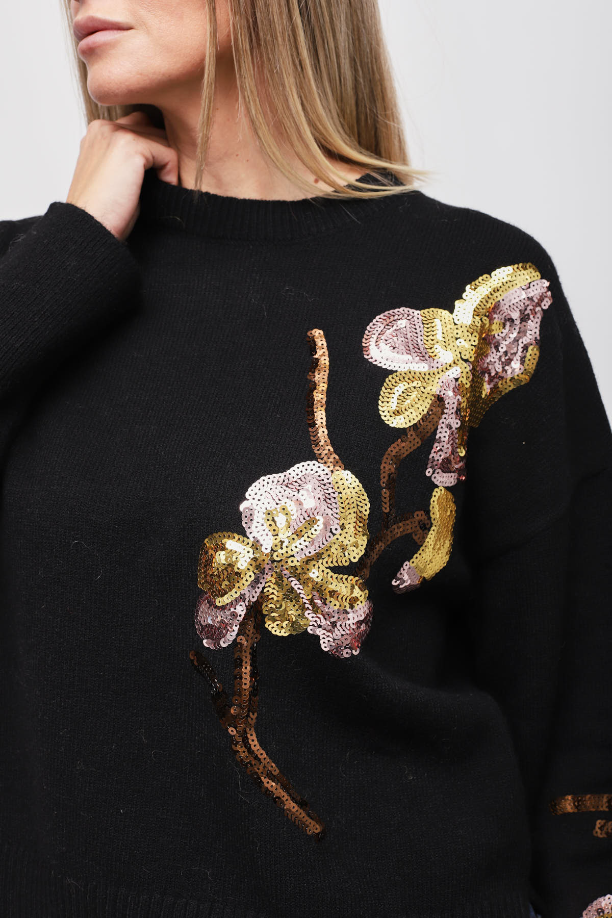 HOME > CLOTHING > KNITWEAR AND SWEATSHIRTS > MAGLIA CON APPLICAZIONE FLOREALE DI PAILLETTES