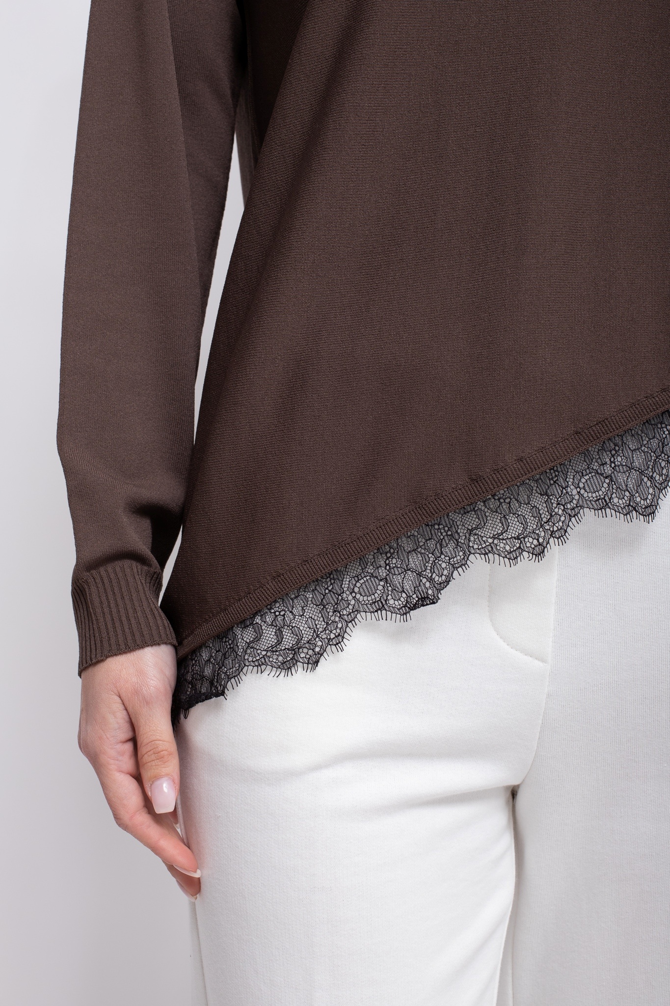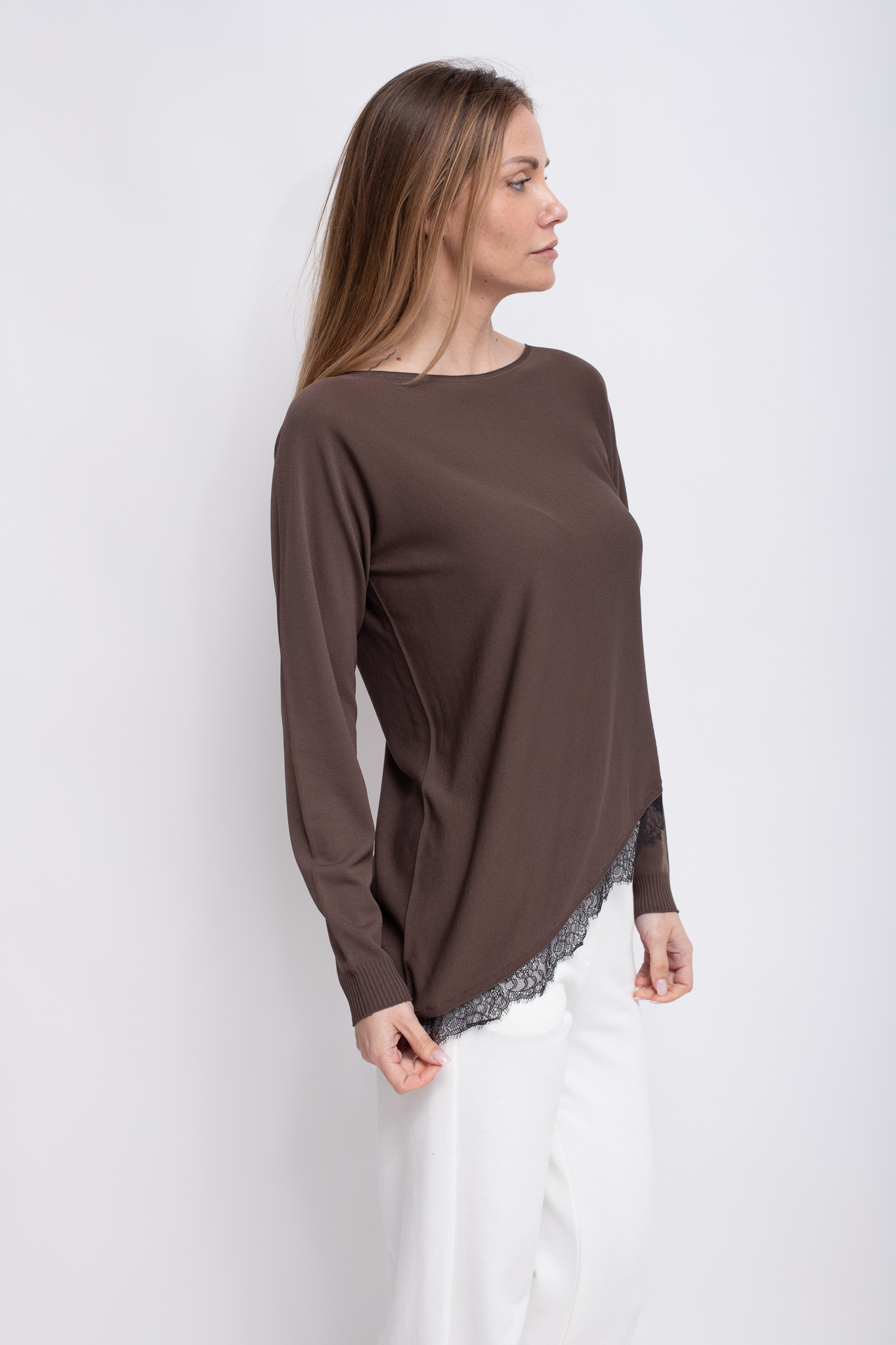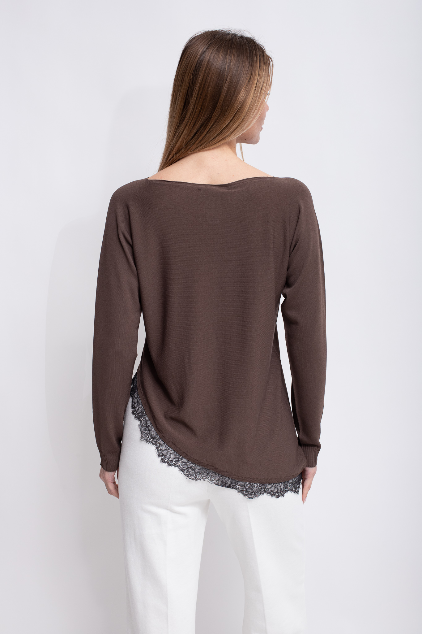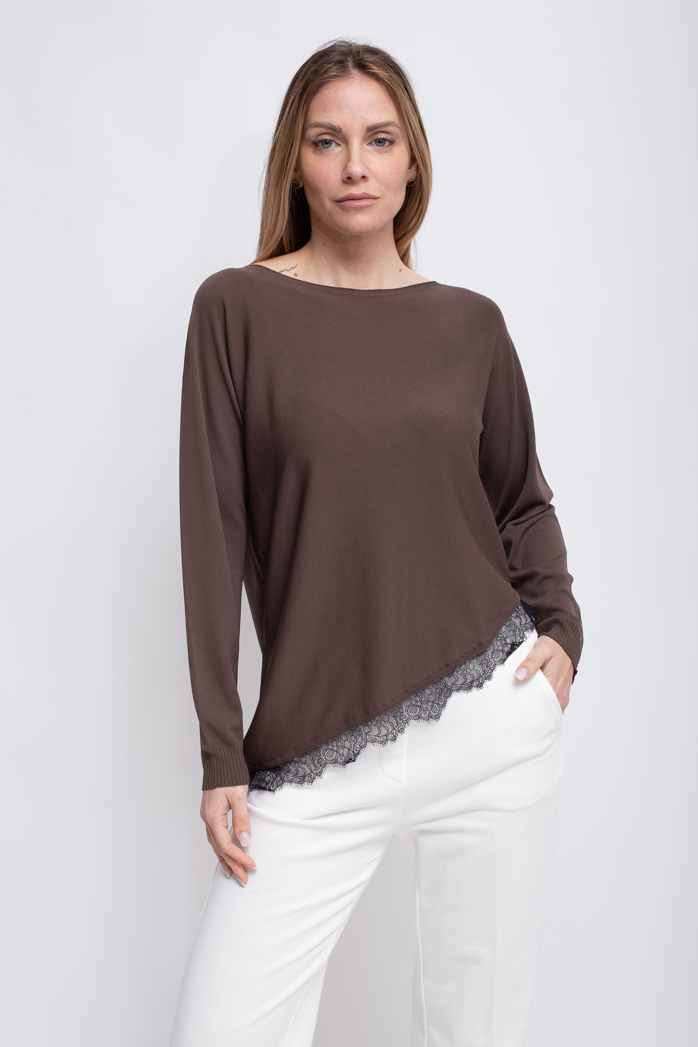 HOME > CLOTHING > KNITWEAR AND SWEATSHIRTS > MAGLIA CON FONDO ASIMMETRICO E PIZZO