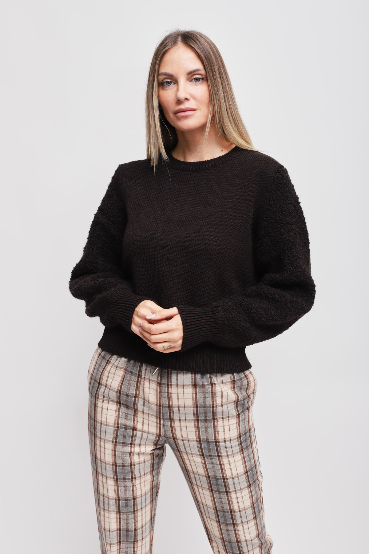 HOME > CLOTHING > KNITWEAR AND SWEATSHIRTS > MAGLIA CON MANICHE BOUCL?
