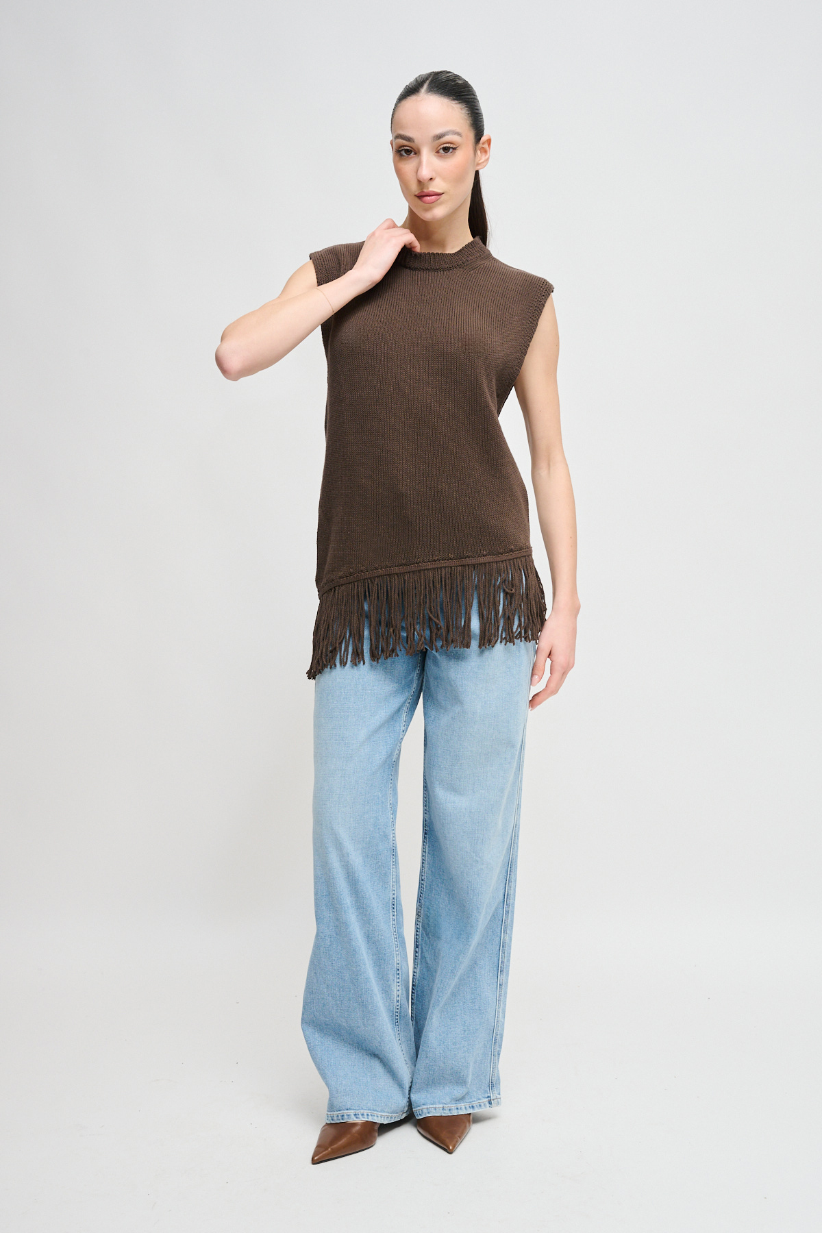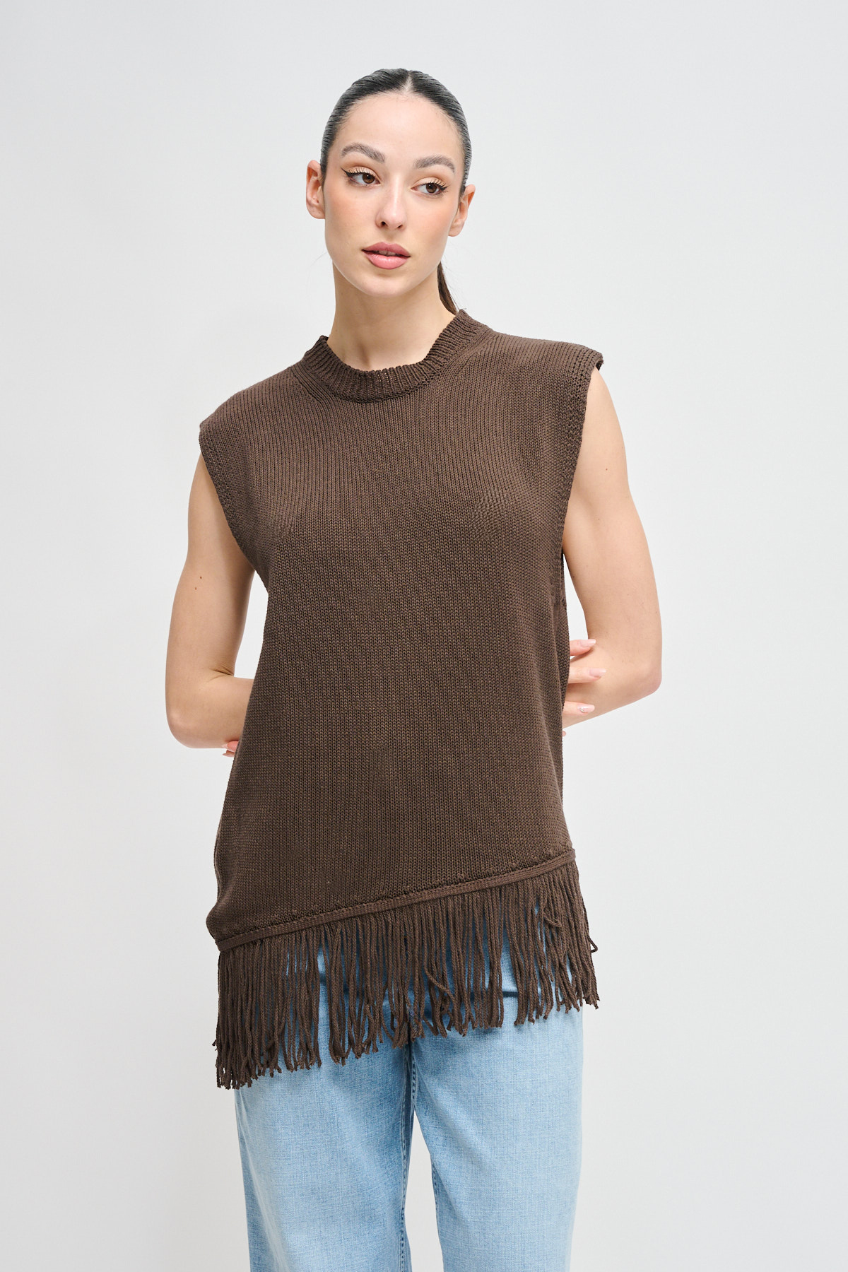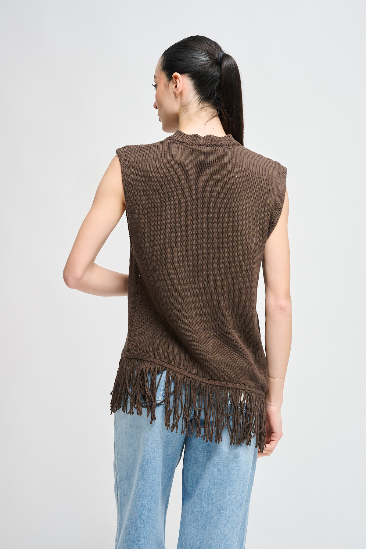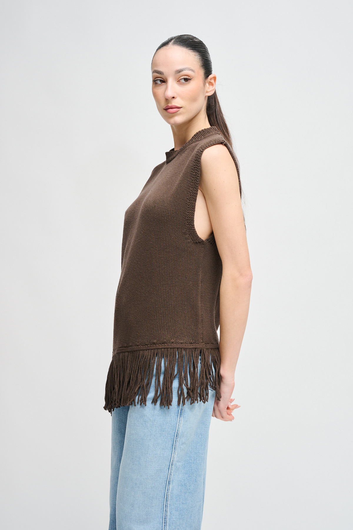 HOME > CLOTHING > KNITWEAR AND SWEATSHIRTS > MAGLIA SMANICATA CON FRANGE