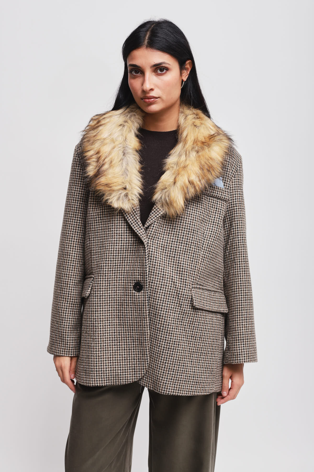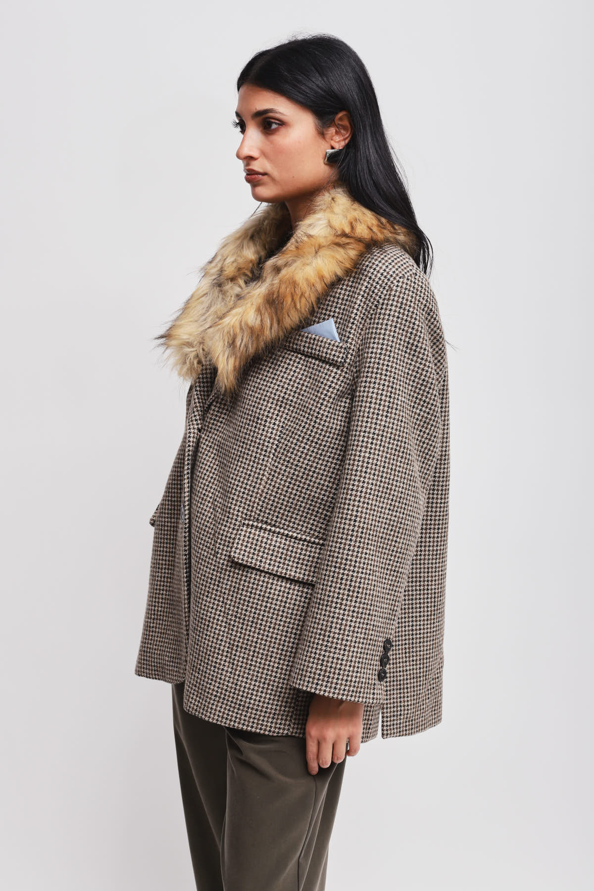 HOME > CLOTHING > OUTERWEAR > GIACCA OVER CON COLLO IN ECOPELLICCIA
