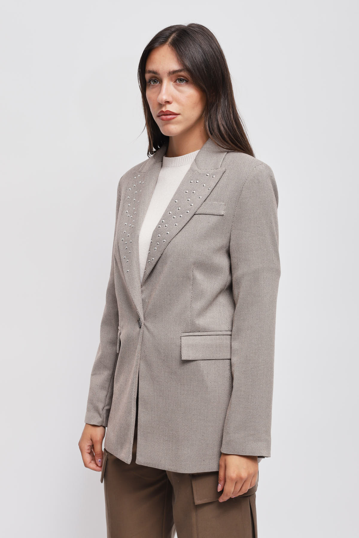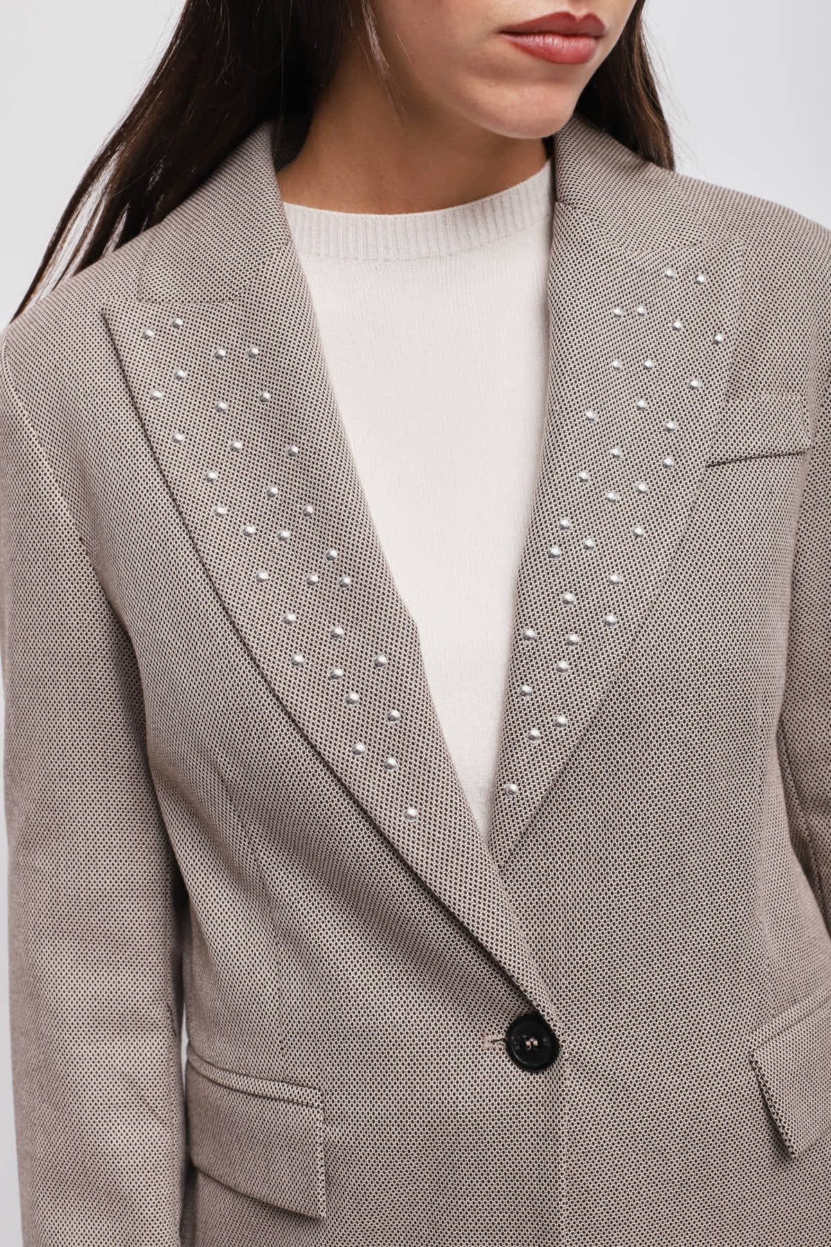 Jacket with a defined silhouette, easily paired with a variety of outfits. The style is embellished with chic decorations that add elegance. This outerwear piece is ideal for adding a touch of refinement to any look.