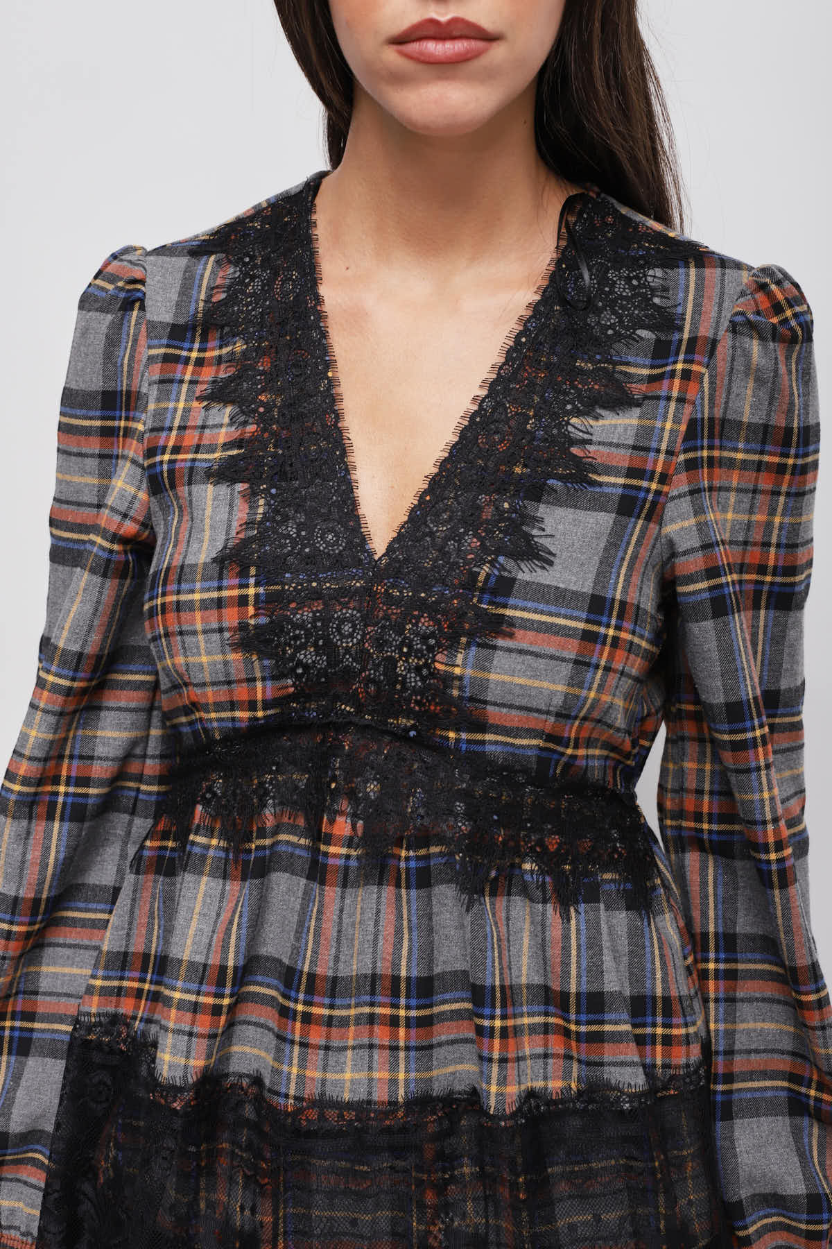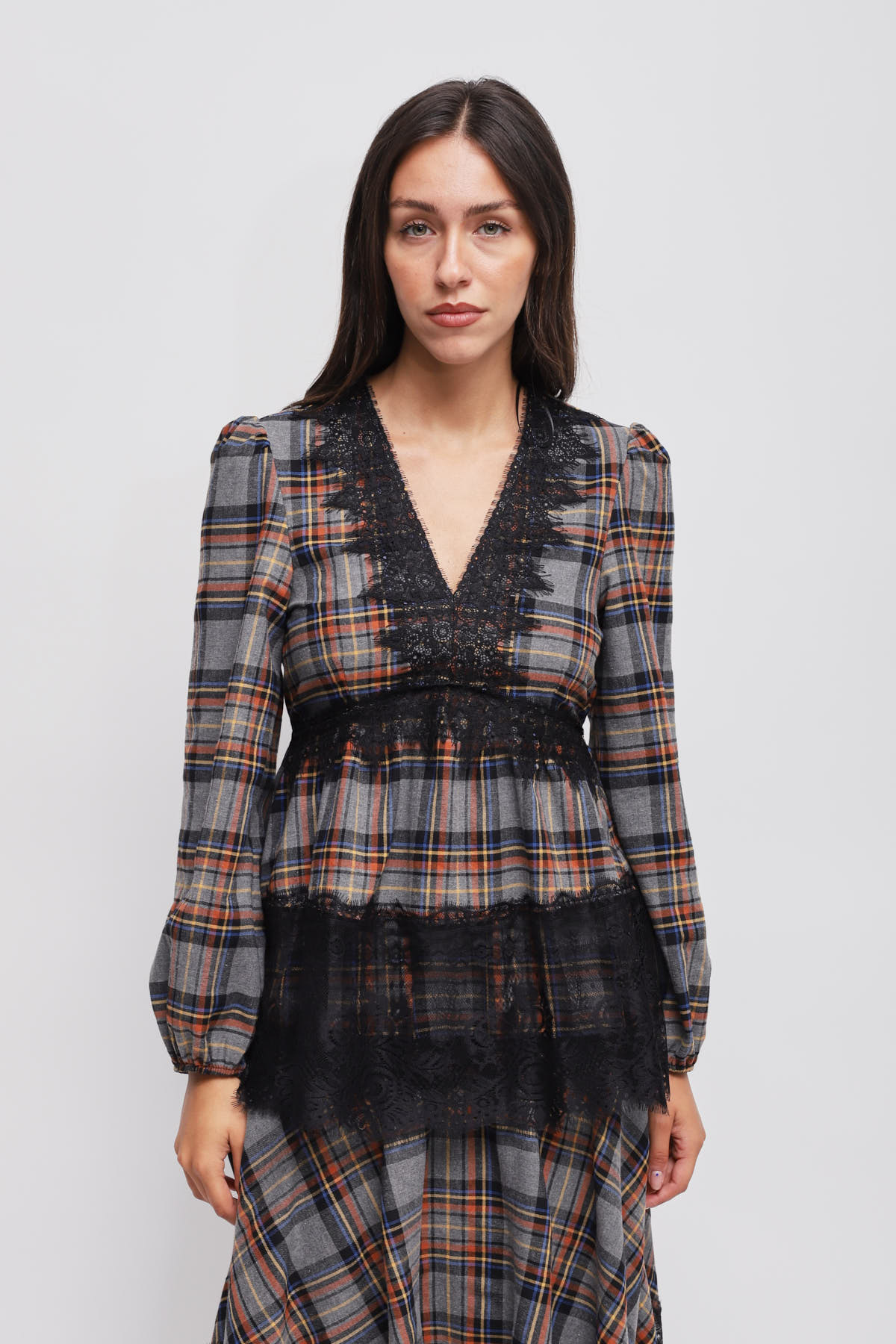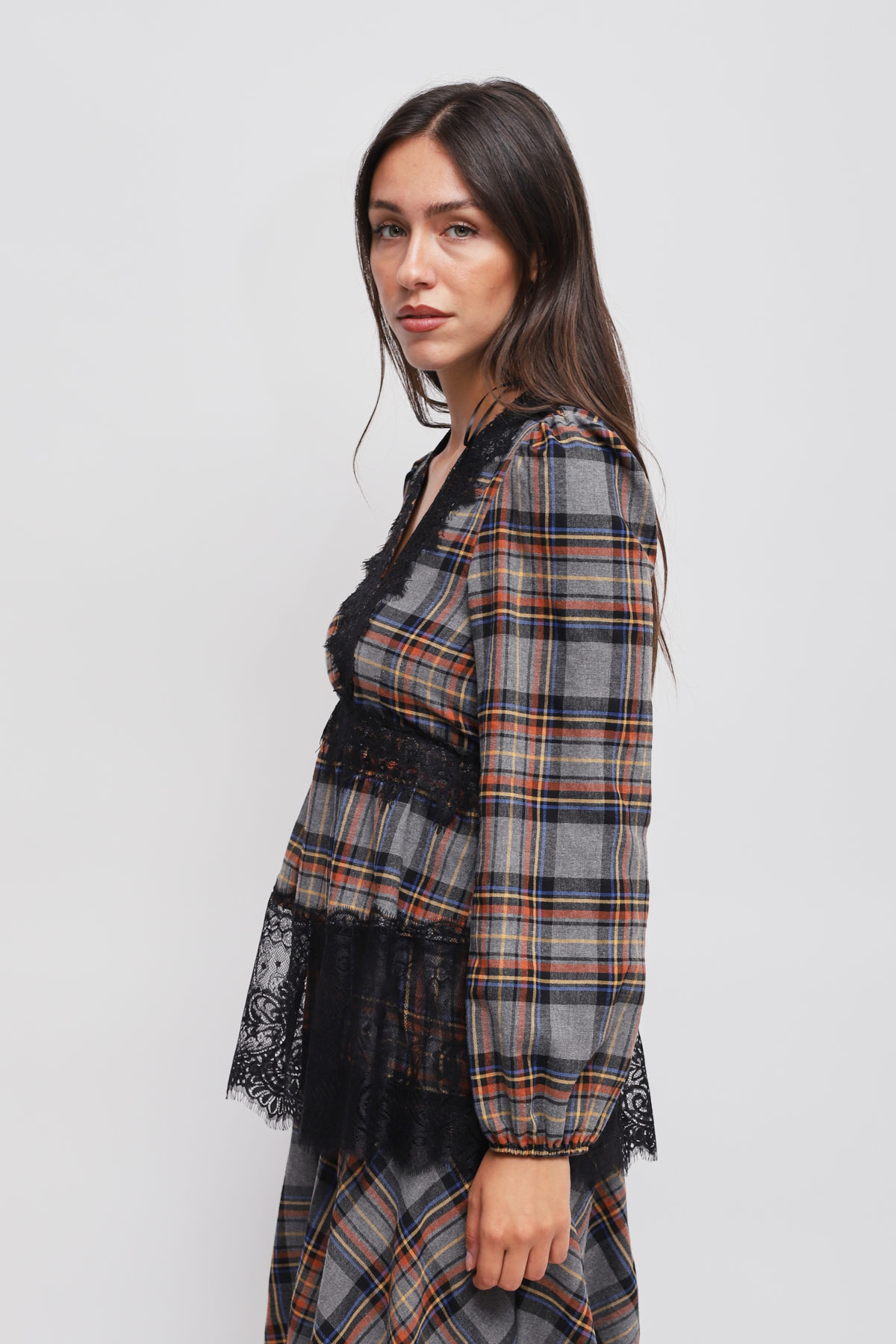 HOME > CLOTHING > SHIRTS AND BLOUSES > BLUSA CHECK CON DETTAGLI IN PIZZO