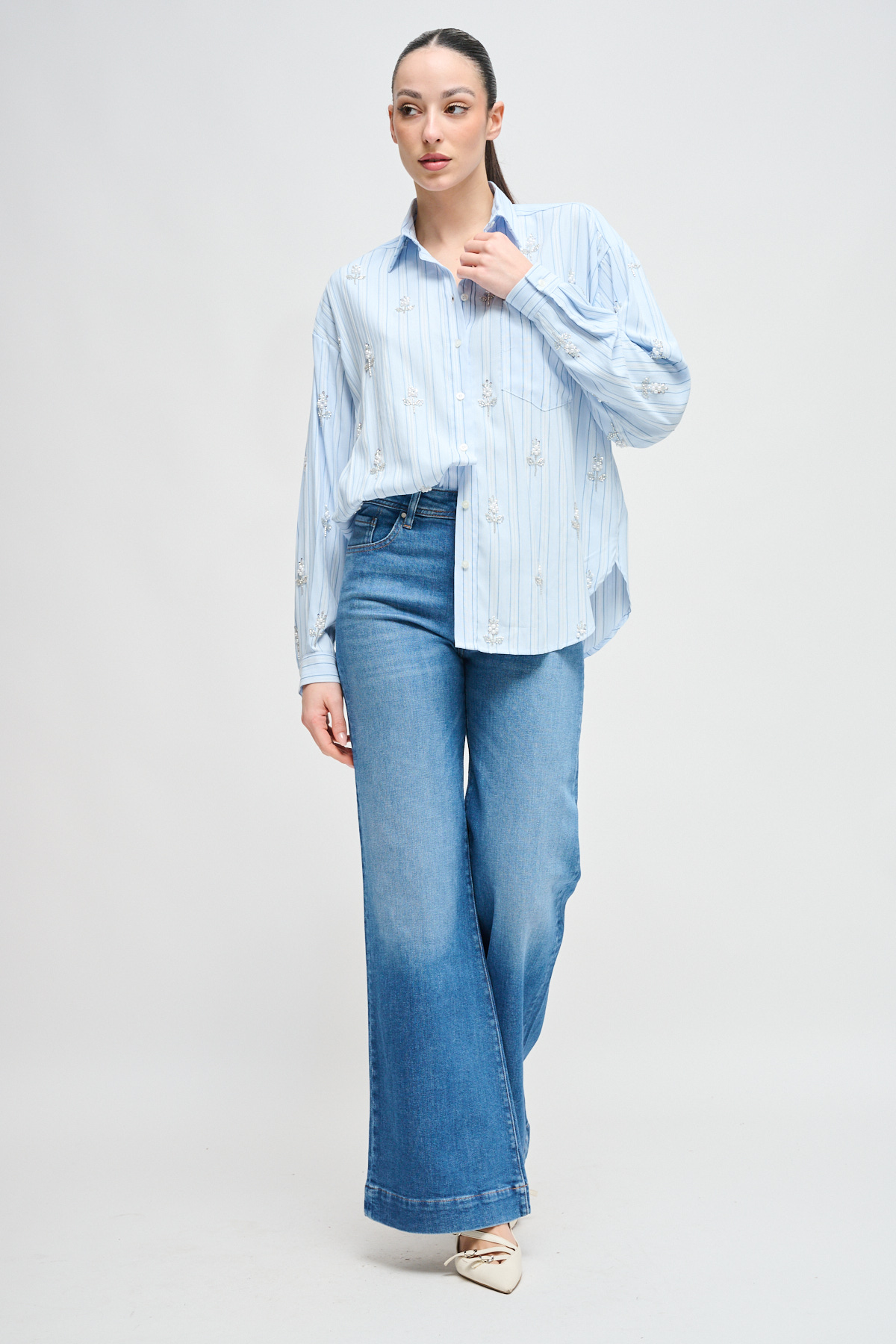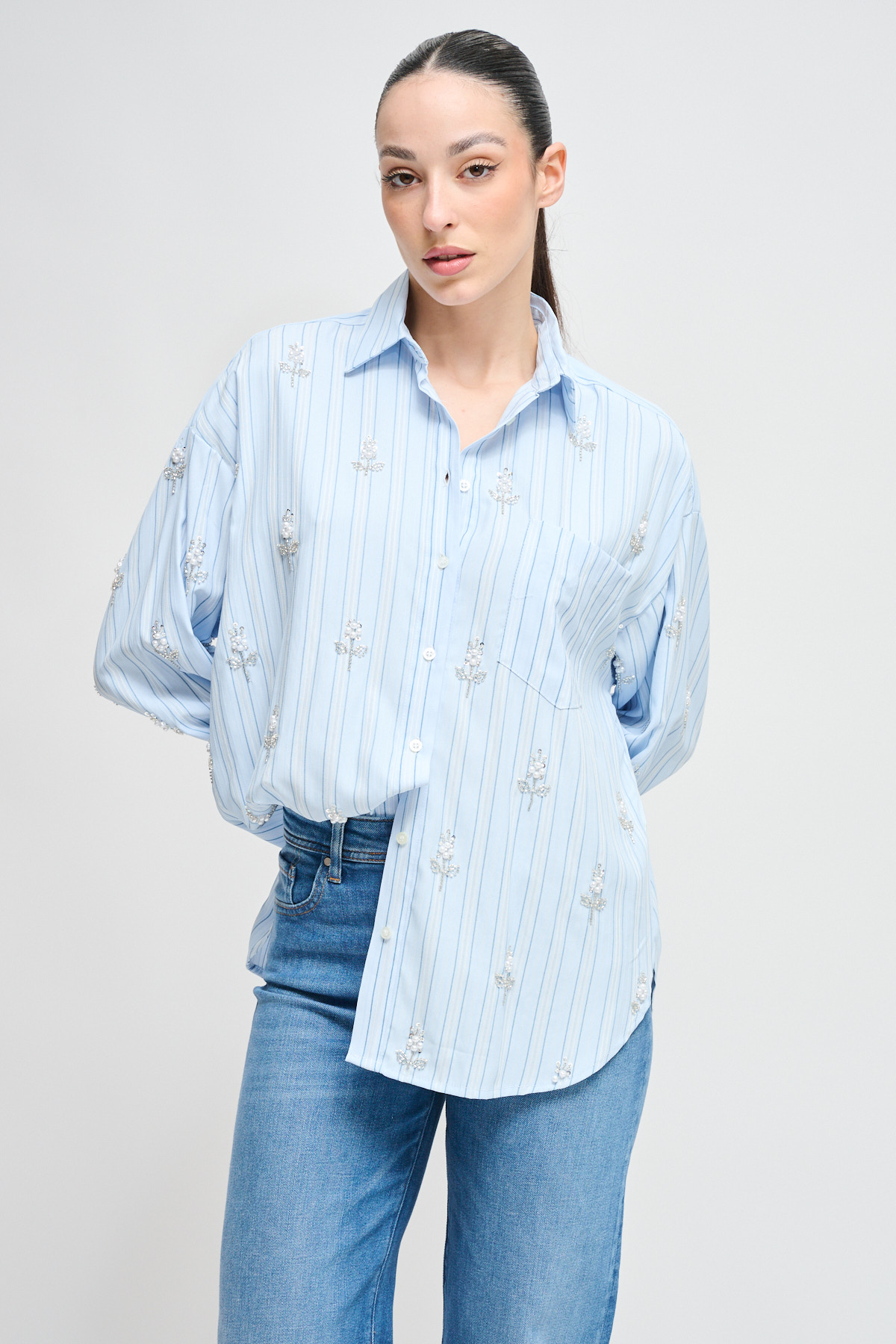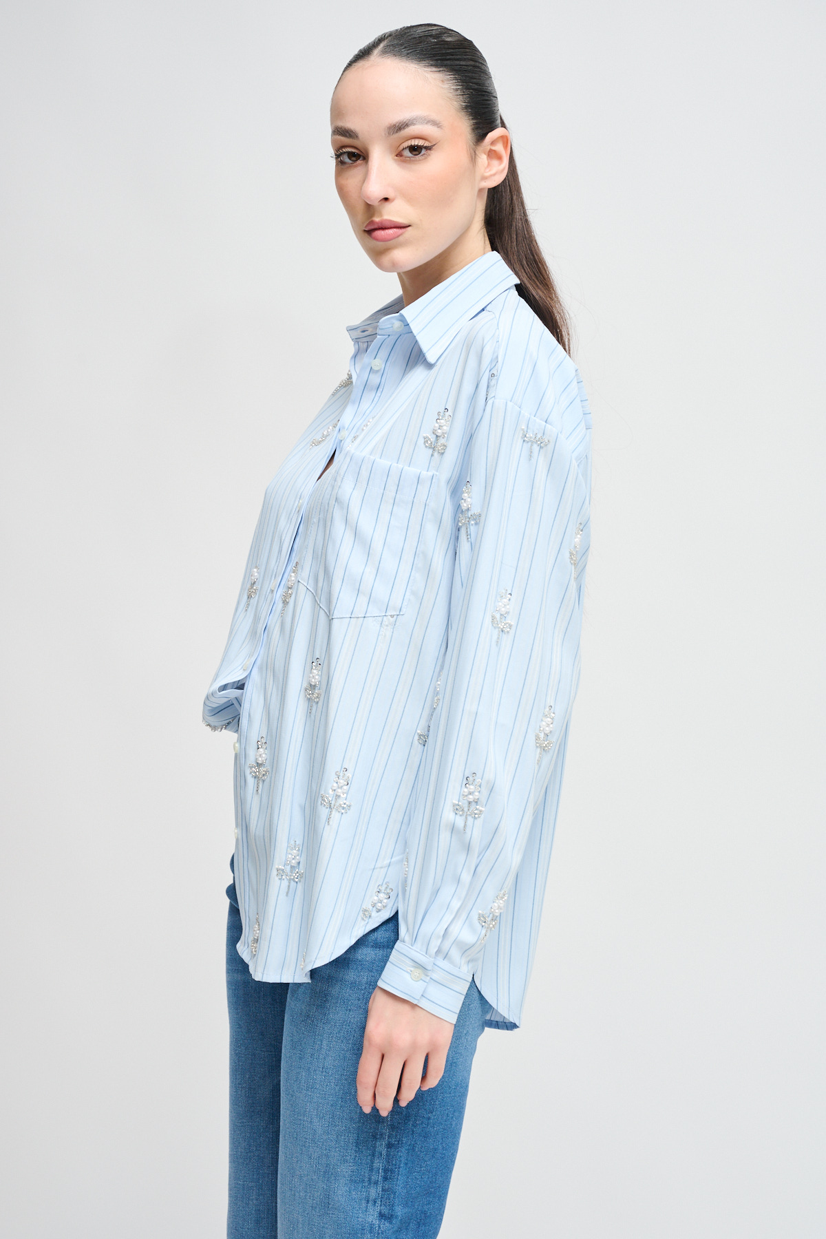 HOME > CLOTHING > SHIRTS AND BLOUSES > CAMICIA BASTONCINO CON DETTAGLI GIOIELLO