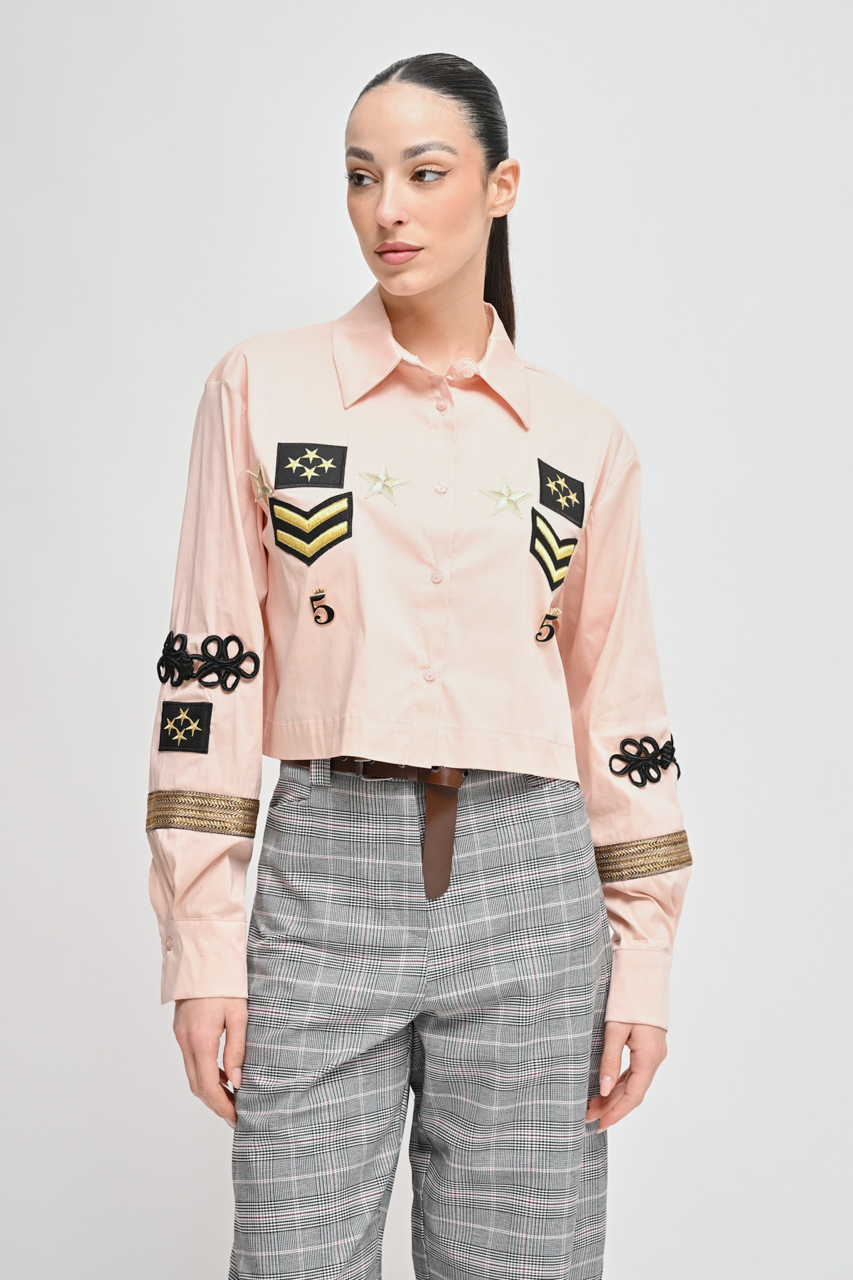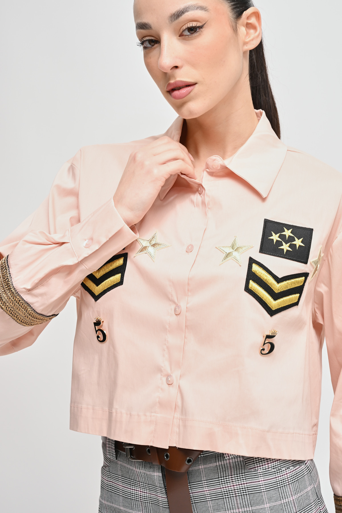 HOME > CLOTHING > SHIRTS AND BLOUSES > CAMICIA CROPPED CON PATCH