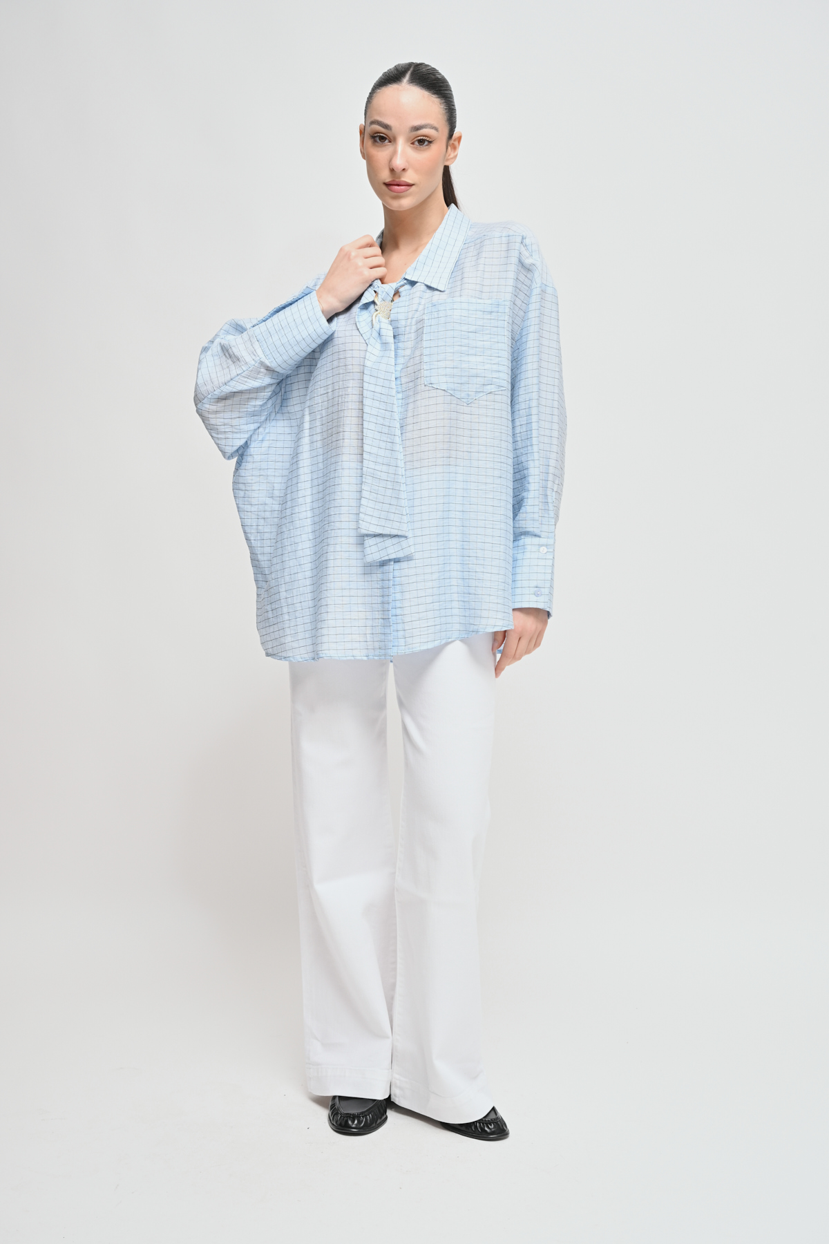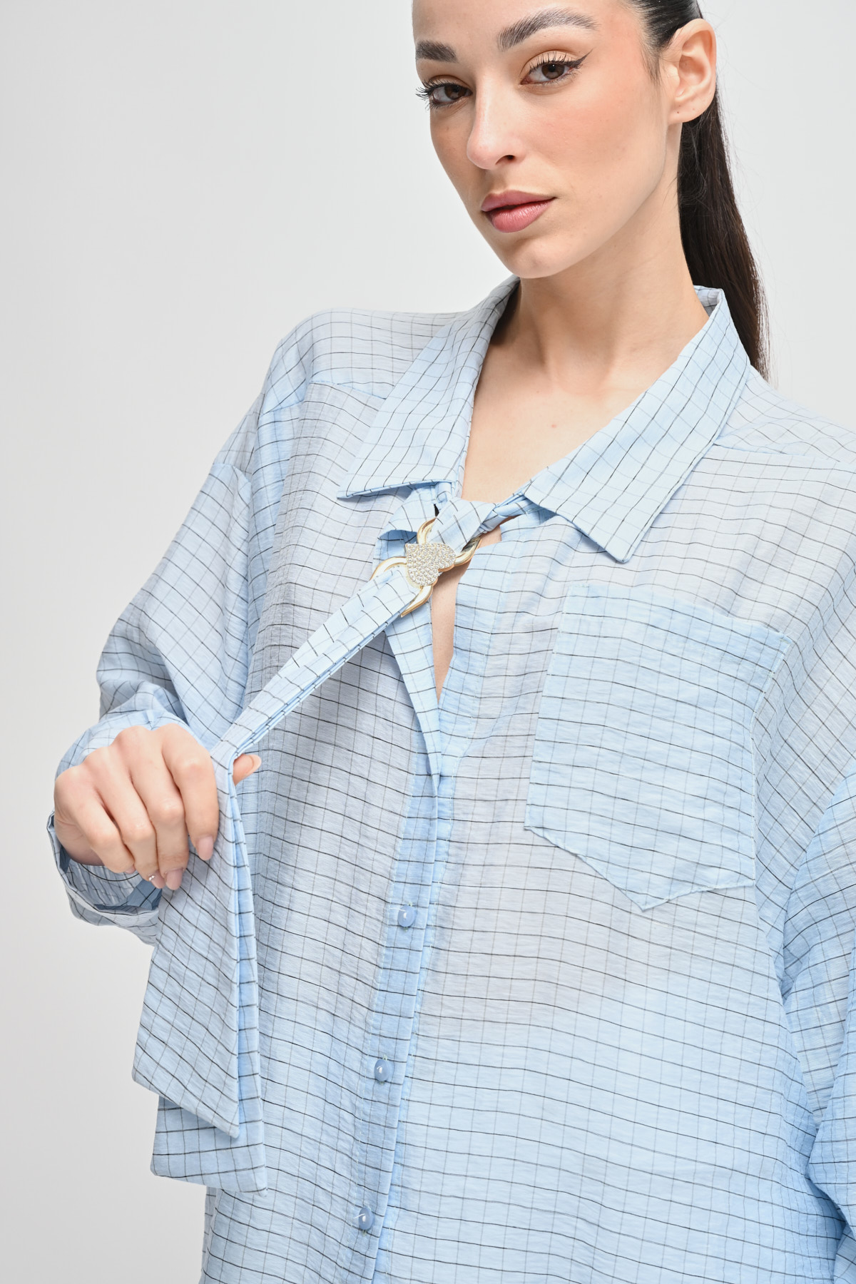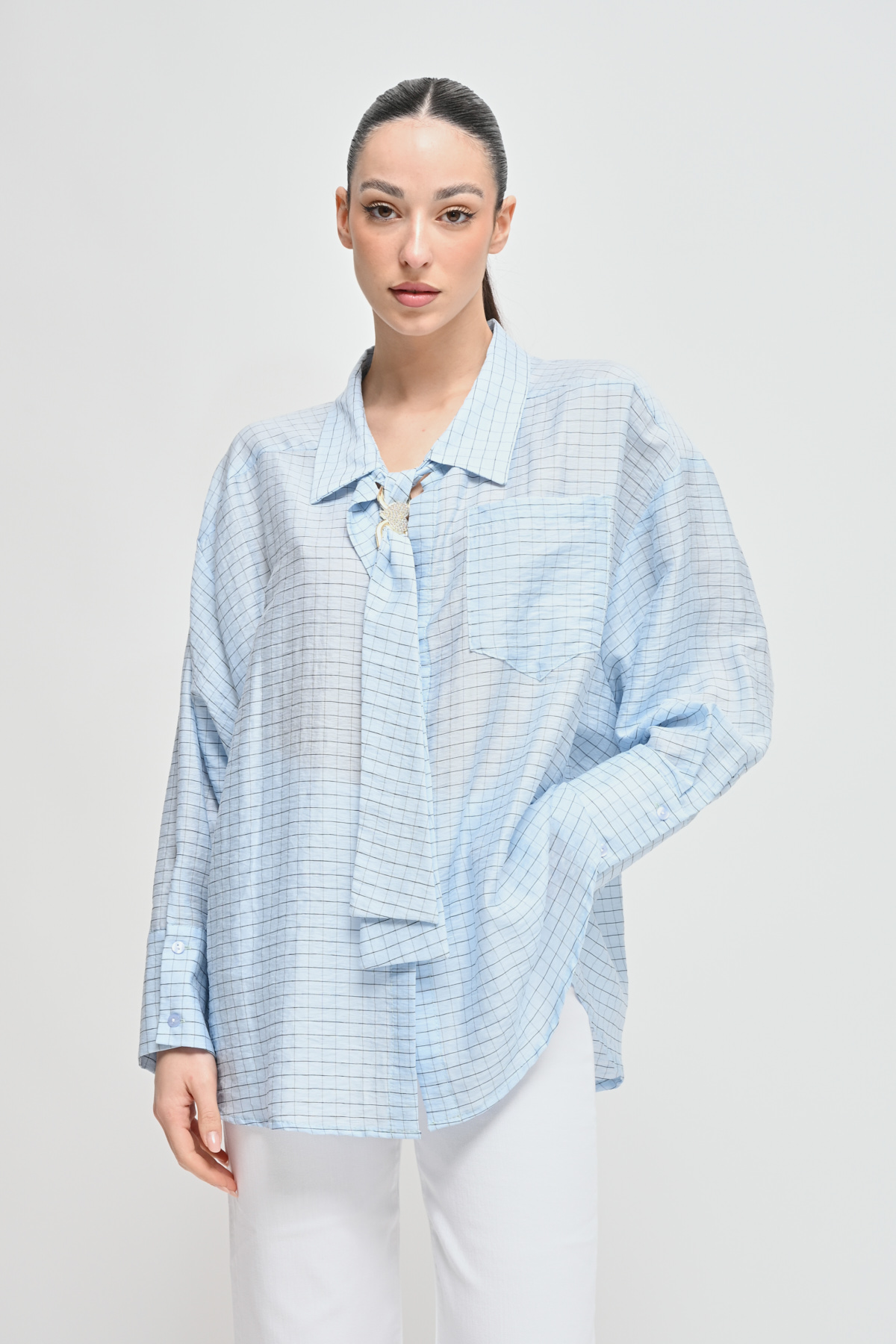 HOME > CLOTHING > SHIRTS AND BLOUSES > CAMICIA OVER A QUADRI CON CRAVATTA