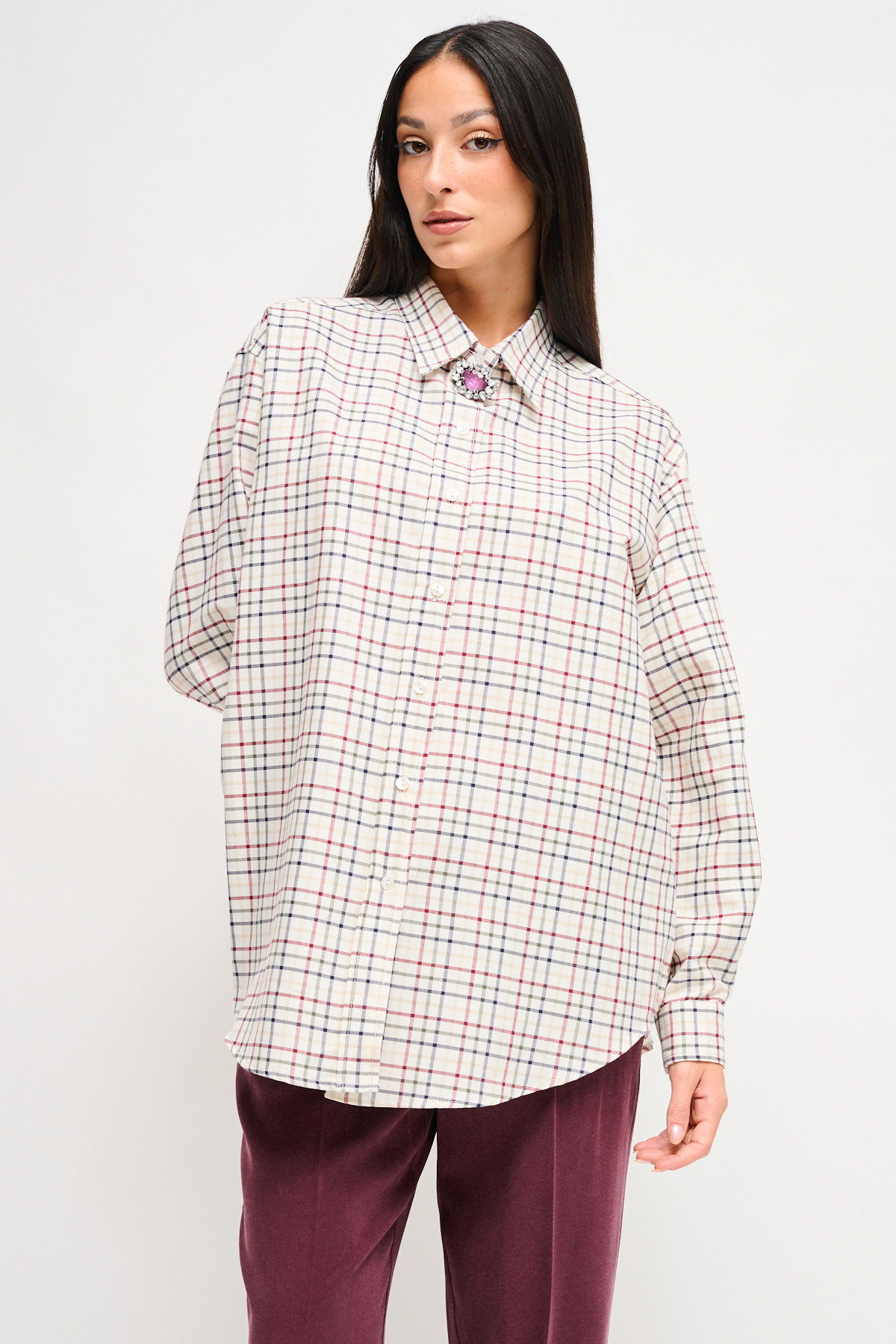 HOME > CLOTHING > SHIRTS AND BLOUSES > CHECK OVER SHIRT WITH JEWEL BROOCH