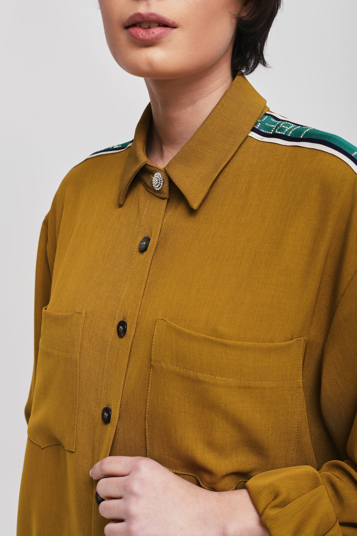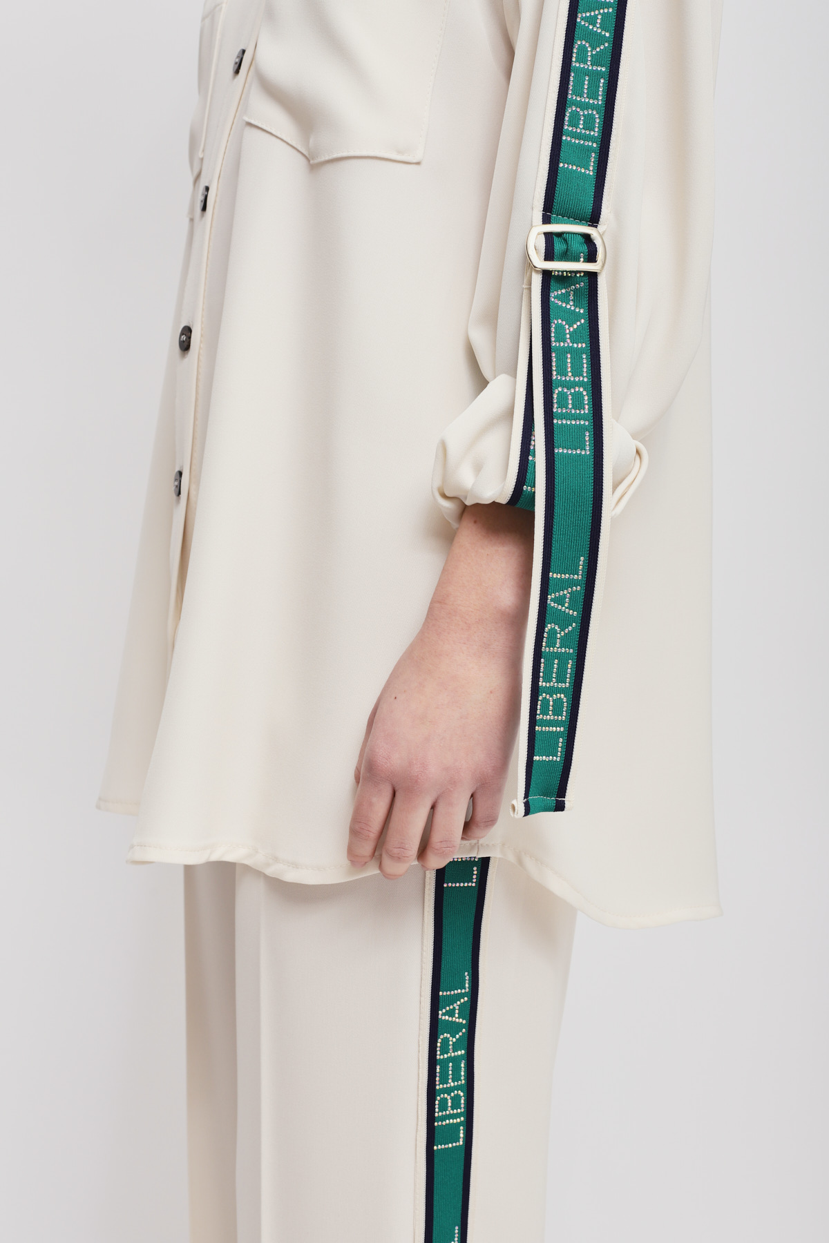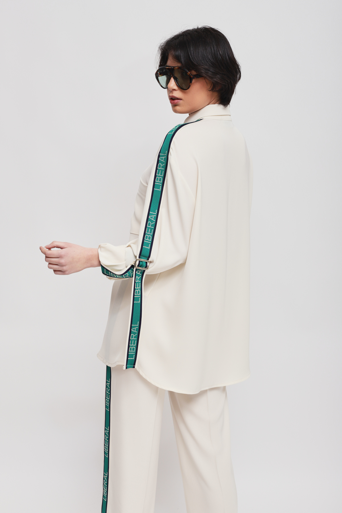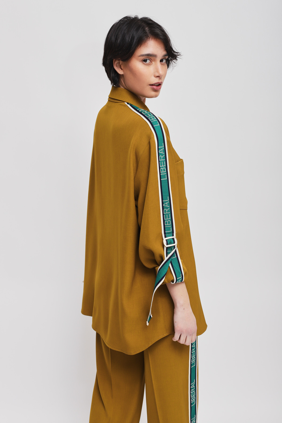 Flowy shirt enriched with side bands along the sleeves, which infuse a sporty-chic allure into a timelessly elegant piece. The front pockets and relaxed fit ensure an impeccable fit, making it the key piece for a sophisticated yet dynamic outfit.