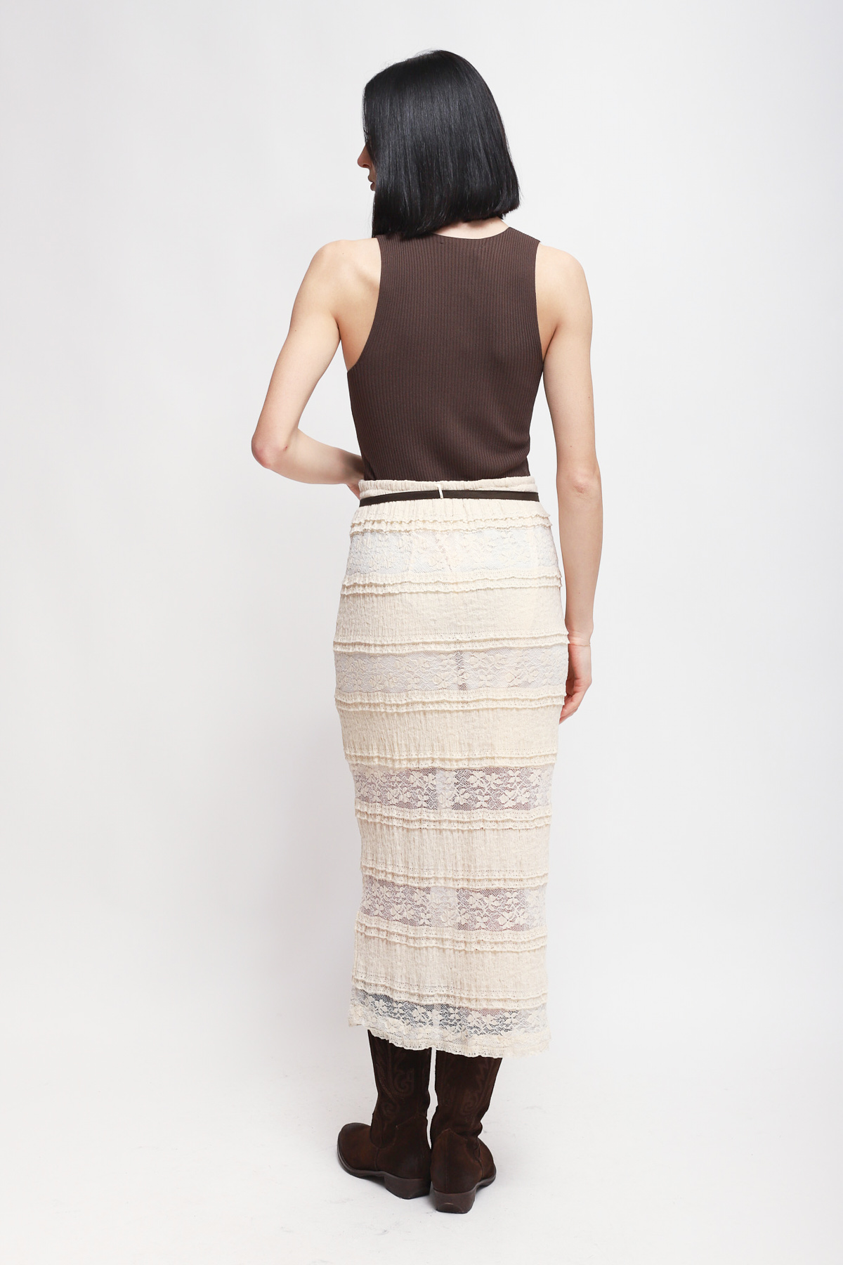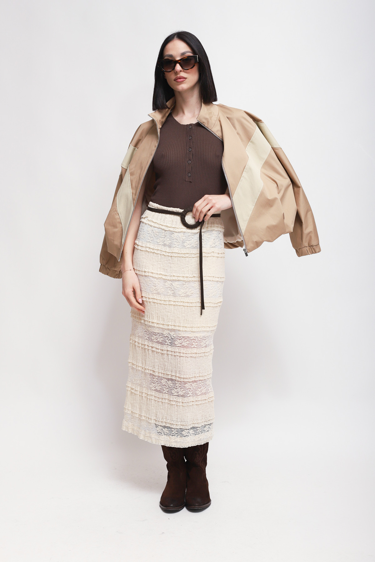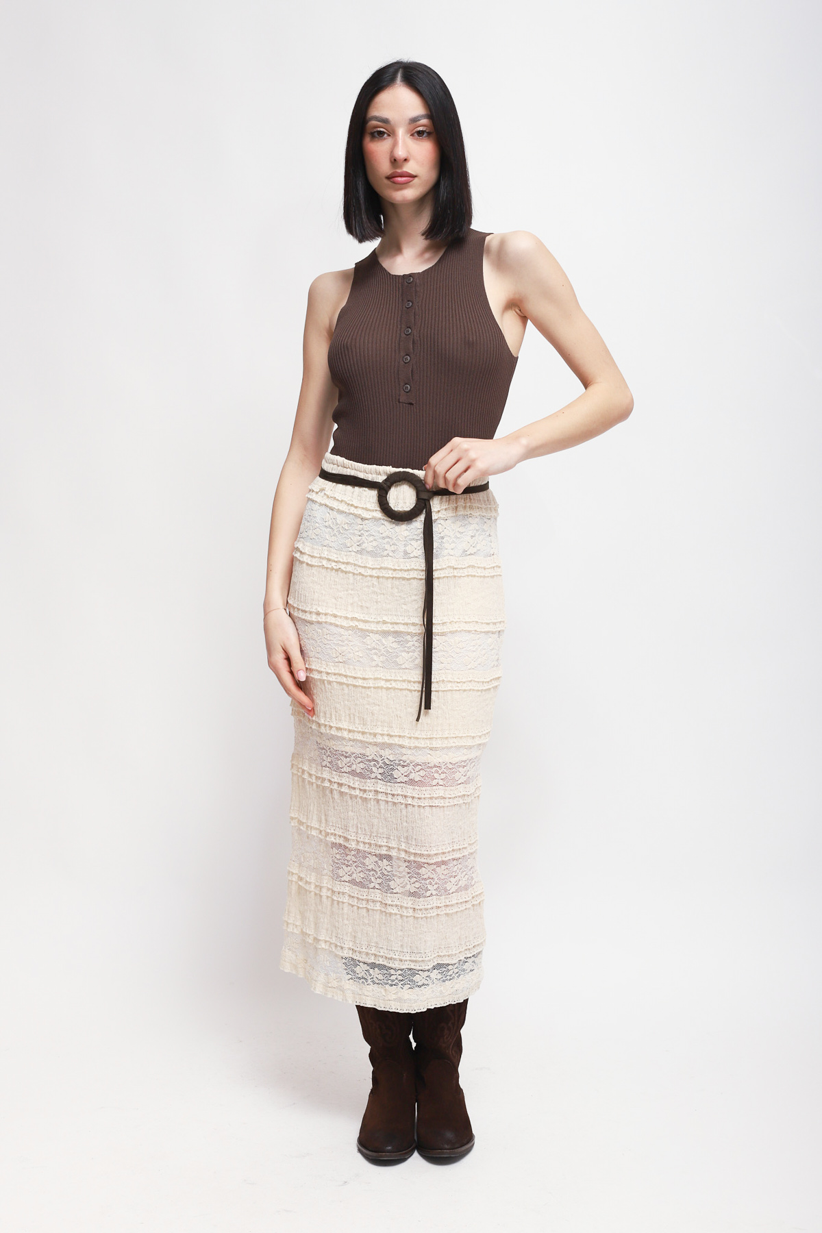GONNA LUNGA IN PIZZO CON CINTURA