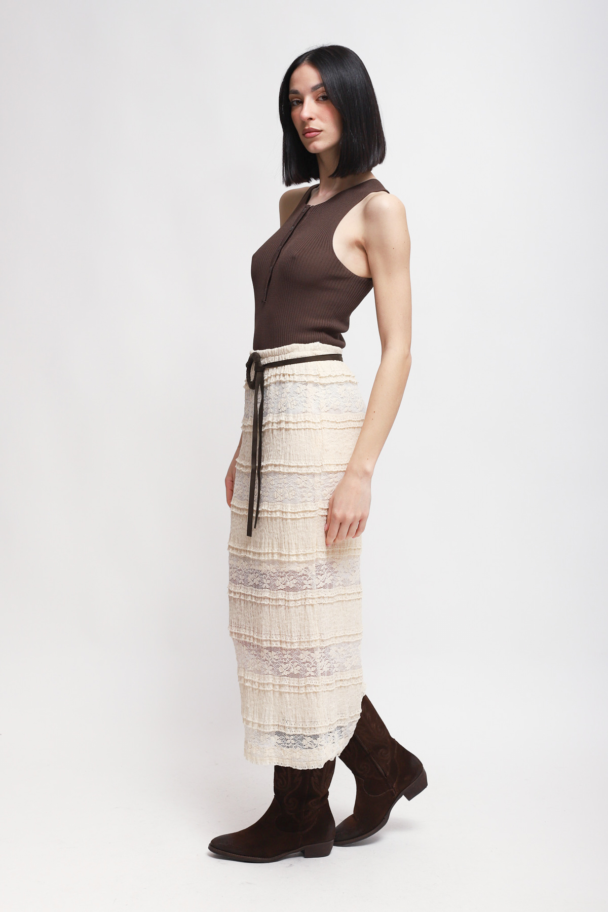 HOME > CLOTHING > SKIRTS > GONNA LUNGA IN PIZZO CON CINTURA