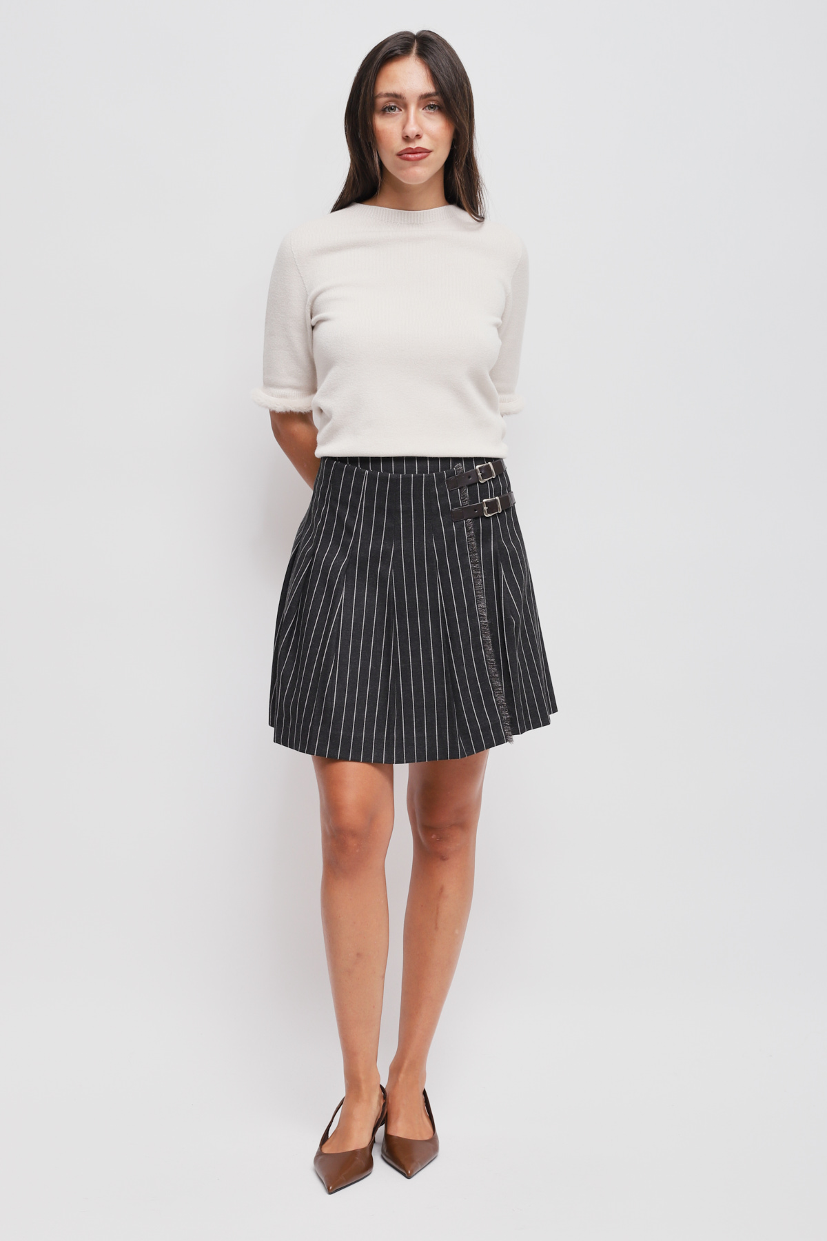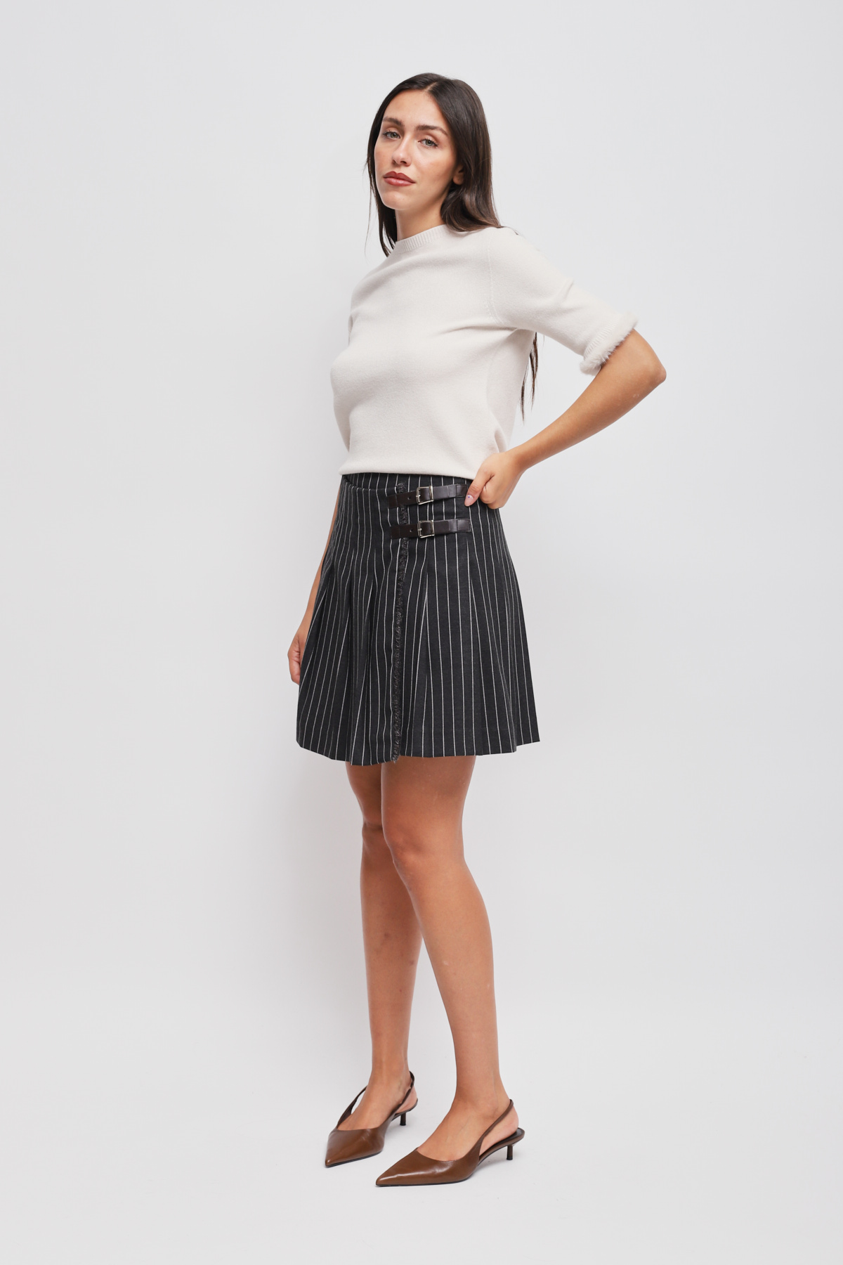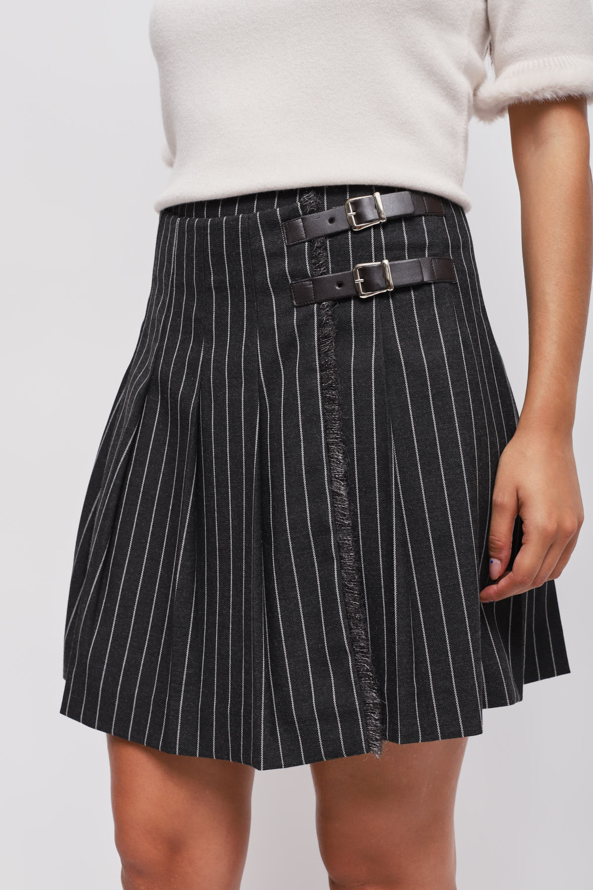 MINIGONNA GESSATA A PIEGHE CON CINTURINI