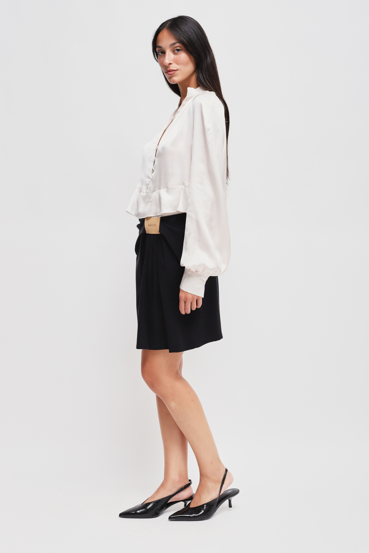 The distinctive waist detail adds personality, making the garment versatile for both formal and casual outfits.