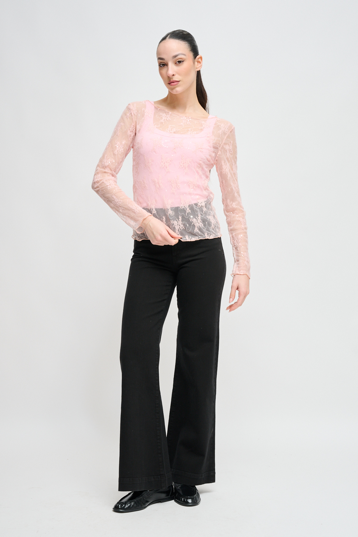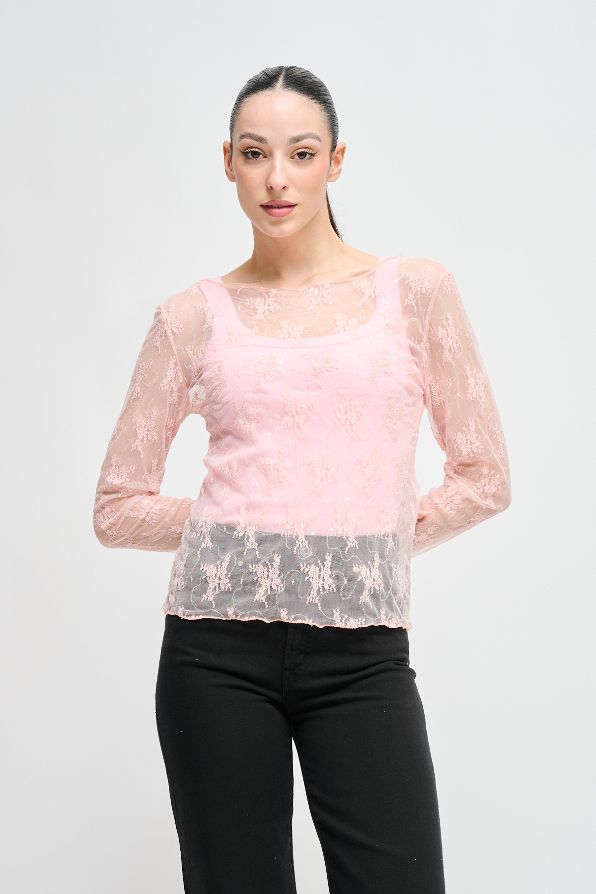 HOME > CLOTHING > TOP AND T-SHIRTS > MAGLIA IN PIZZO CON MICROPAILLETTES