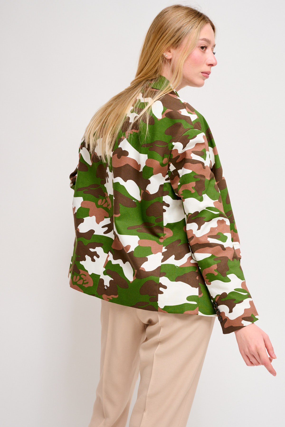 HOME > OUTLET > JACKETS AND BLAZERS > DOUBLE BREASTED CAMOUFLAGE COTTON JACKET WITH PINS