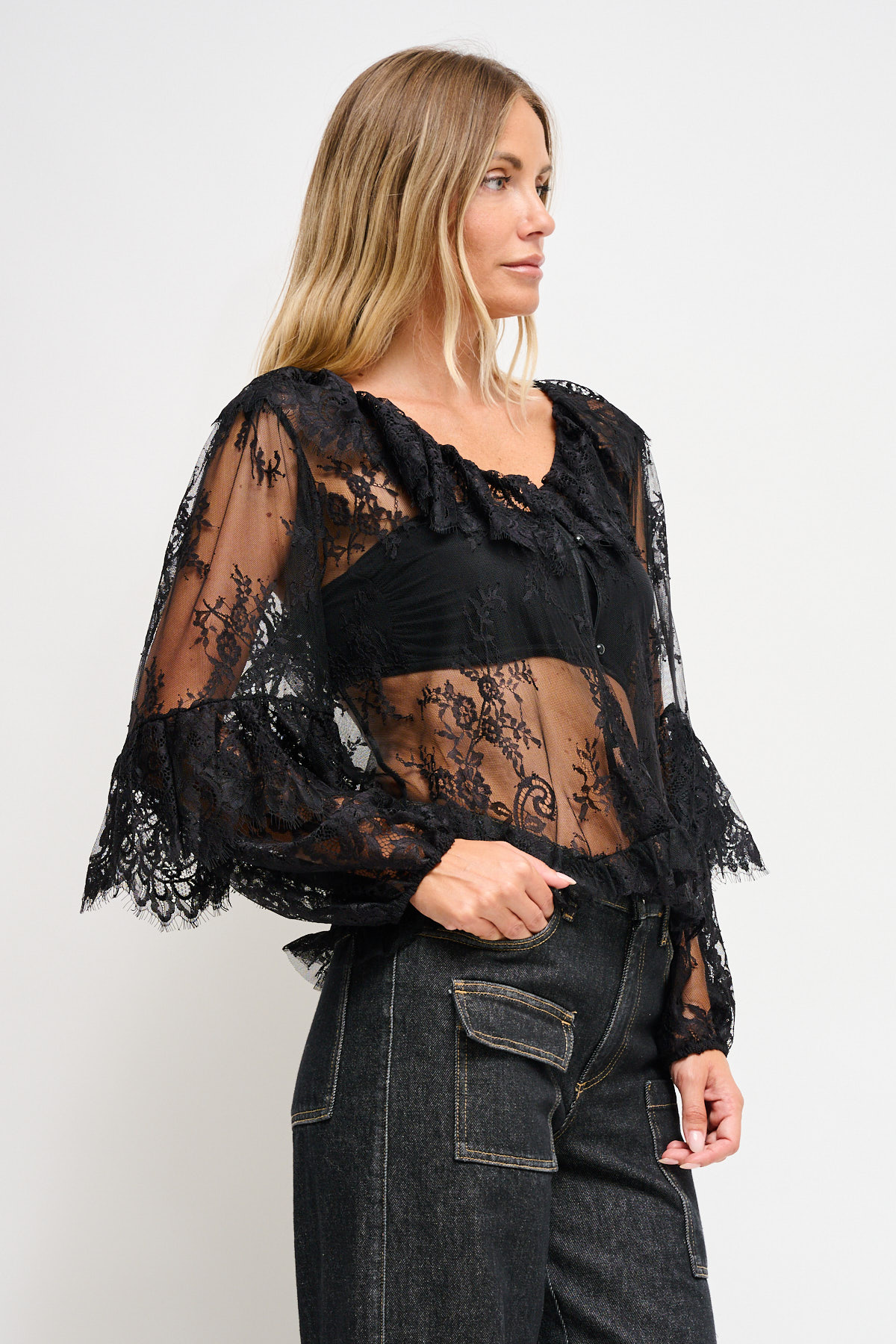 HOME > ABBIGLIAMENTO > CAMICIE E BLUSE > CAMICIA IN PIZZO CON ROUCHES