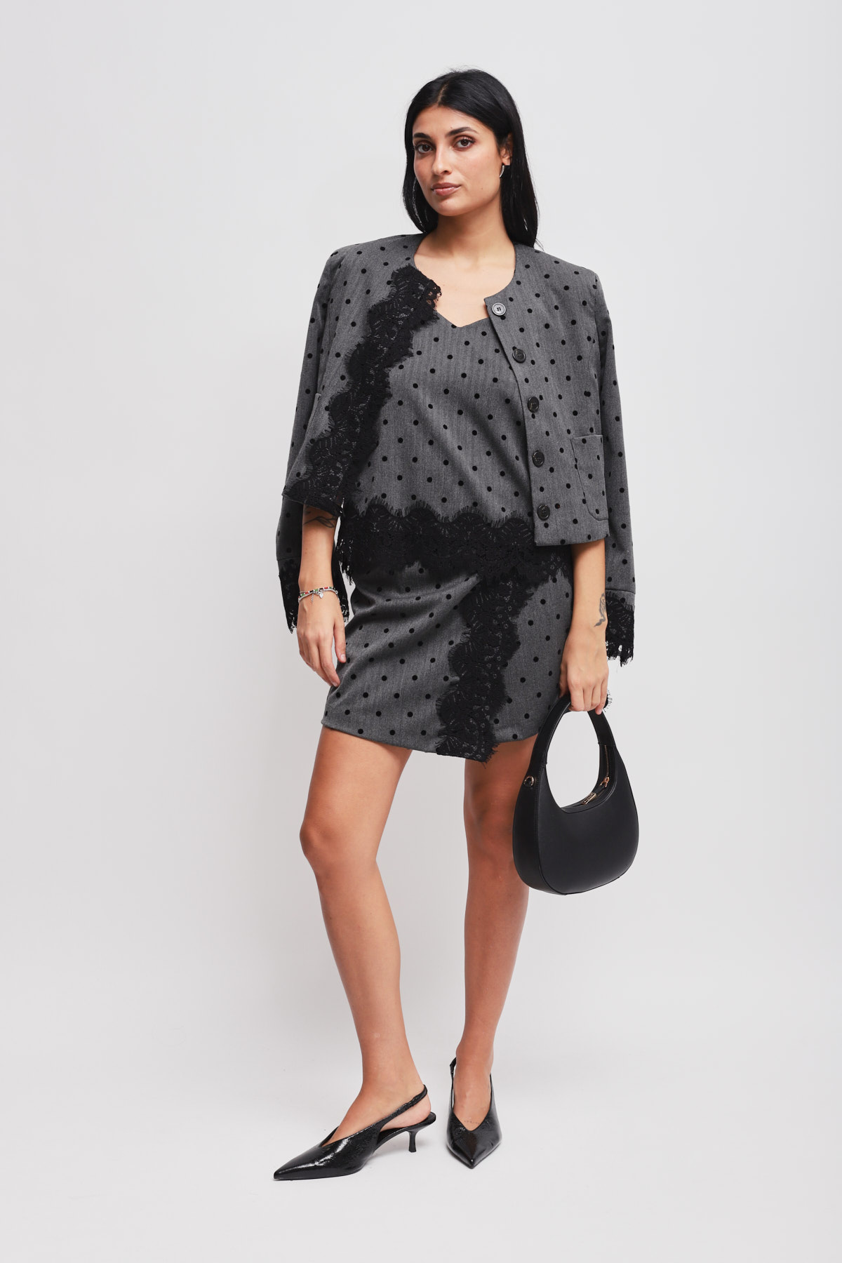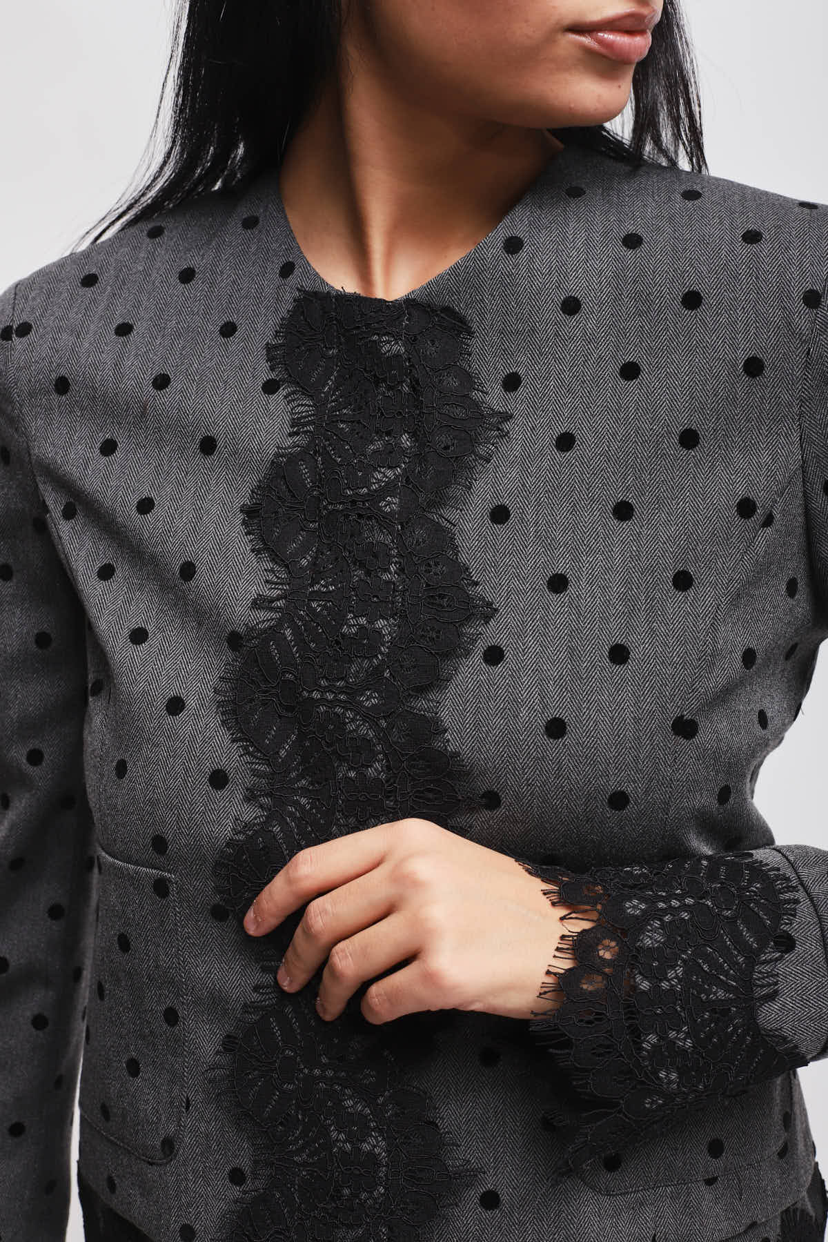 HOME > ABBIGLIAMENTO > CAPISPALLA > GIACCA CROPPED A POIS CON INSERTI IN PIZZO