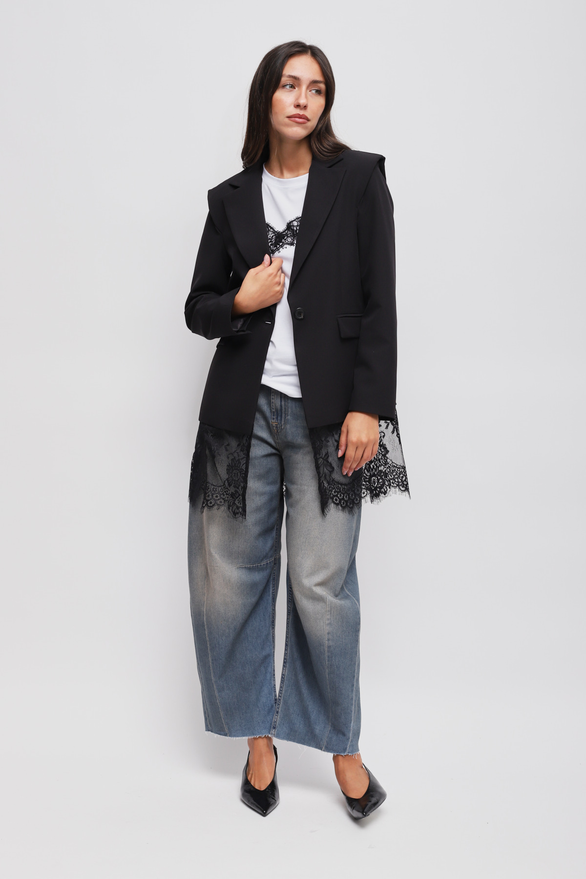 HOME > ABBIGLIAMENTO > CAPISPALLA > GIACCA MONOPETTO CON DETTAGLIO IN PIZZO