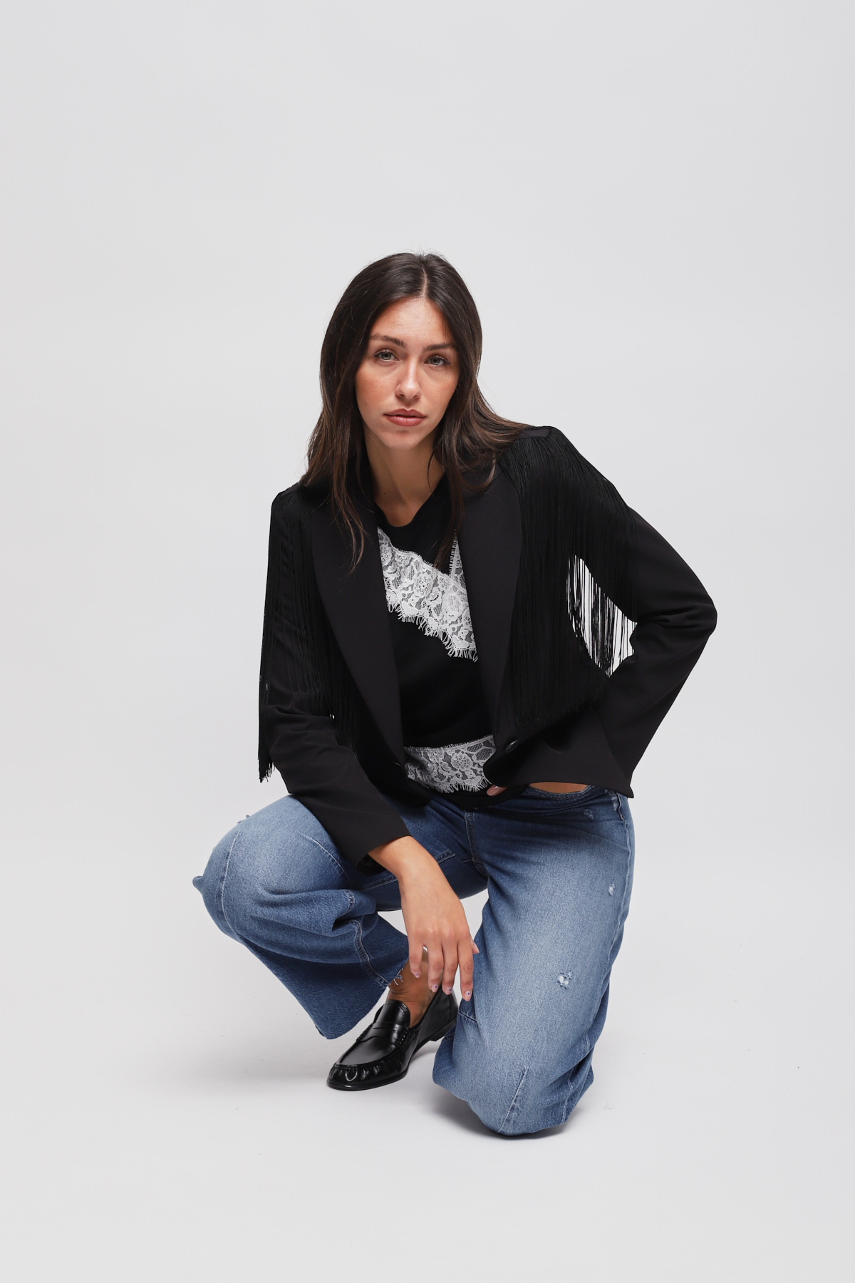 HOME > ABBIGLIAMENTO > CAPISPALLA > GIACCA MONOPETTO CON FRANGE