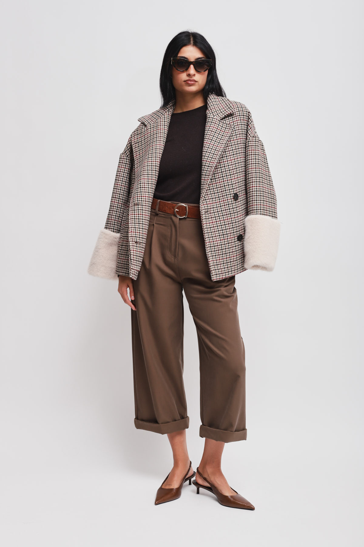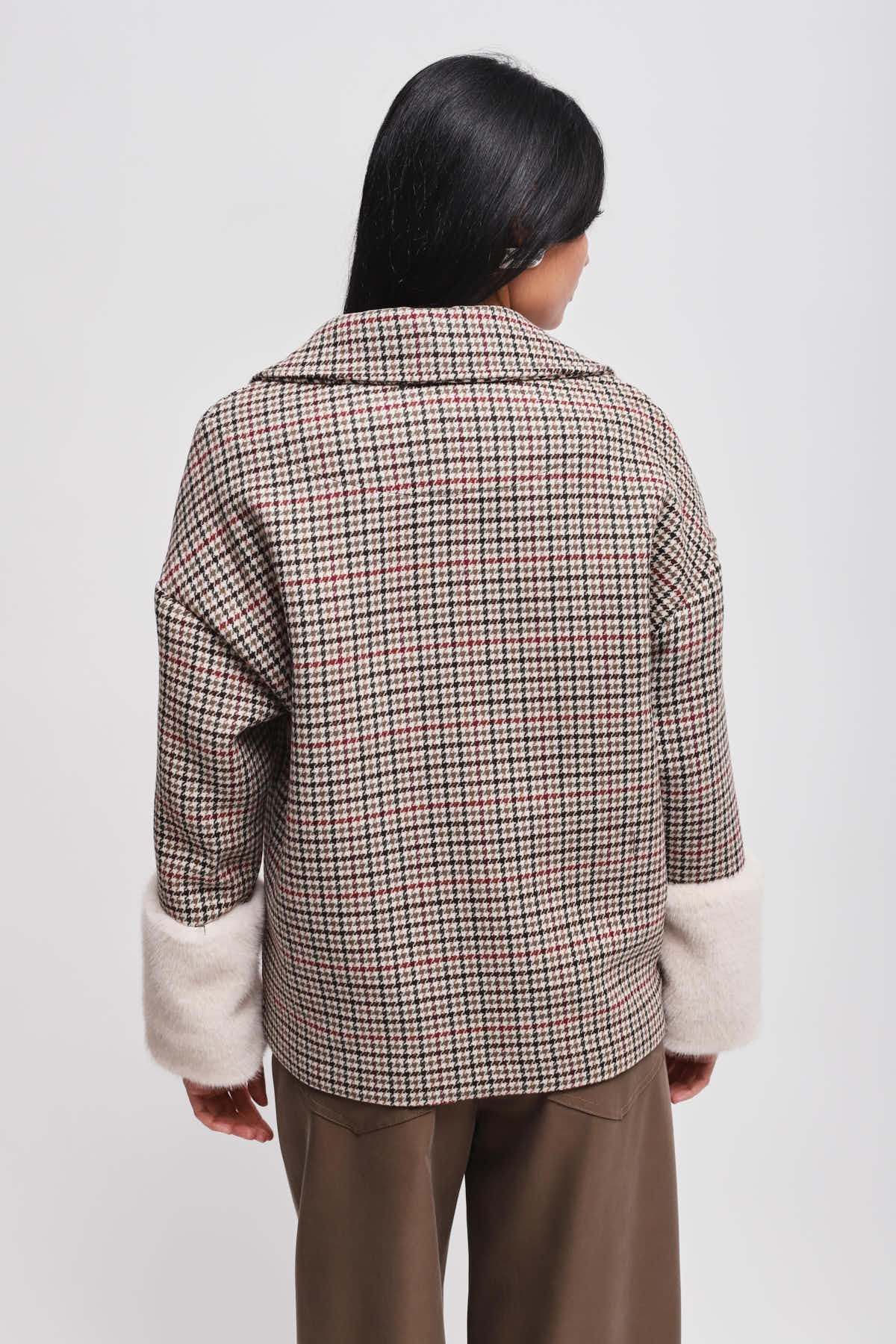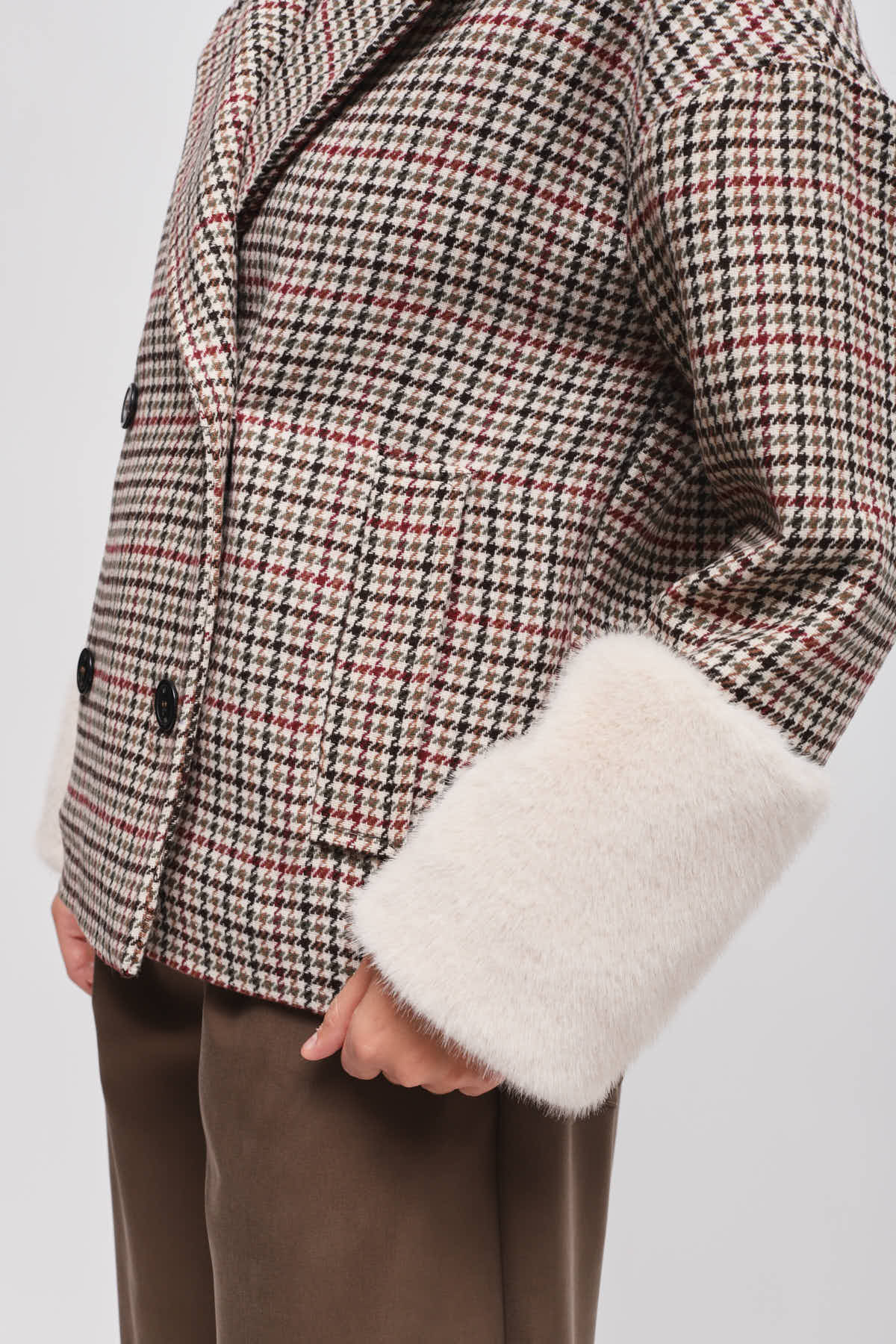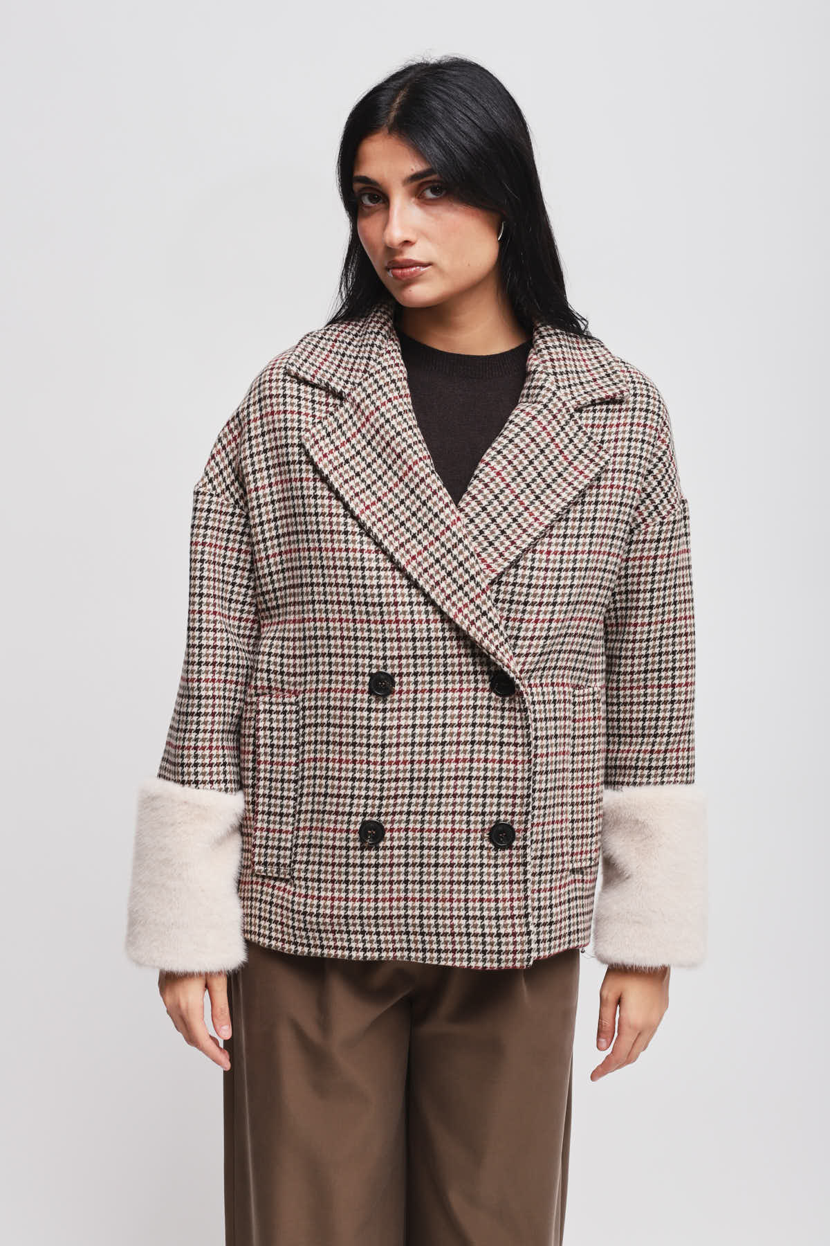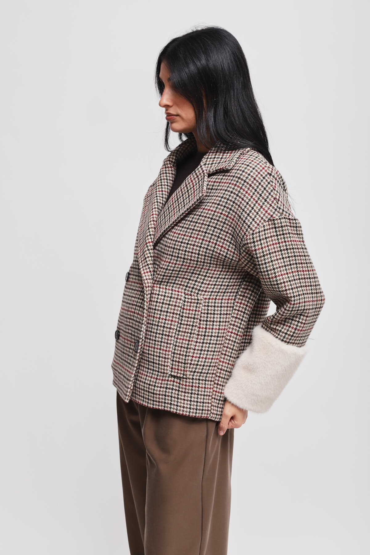 HOME > ABBIGLIAMENTO > CAPISPALLA > GIACCA PIED DE POULE CON MANICA IN ECOPELLICCIA