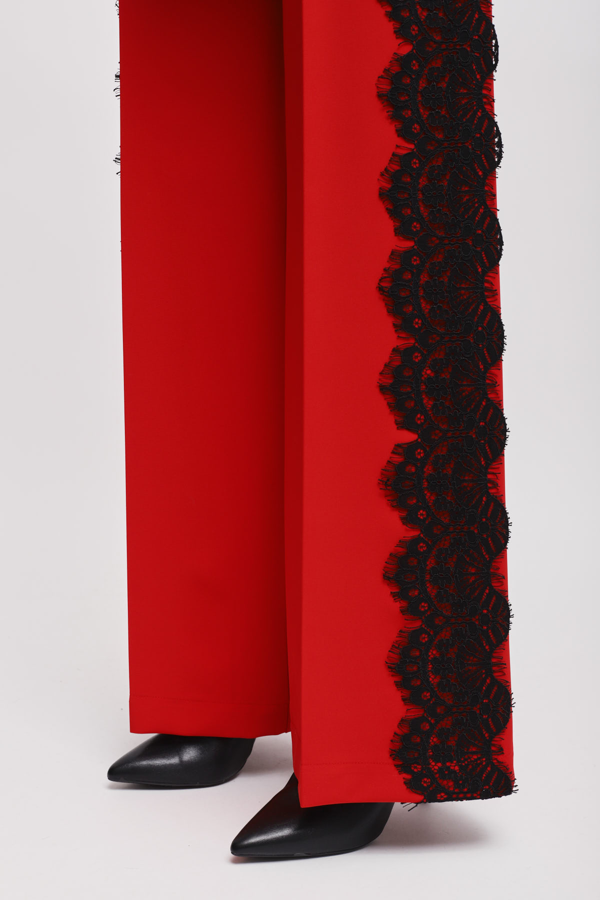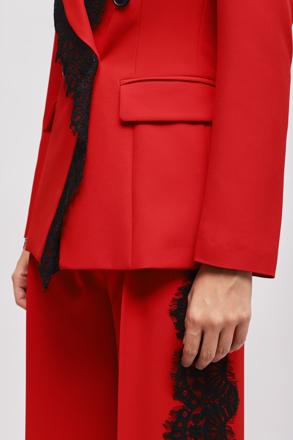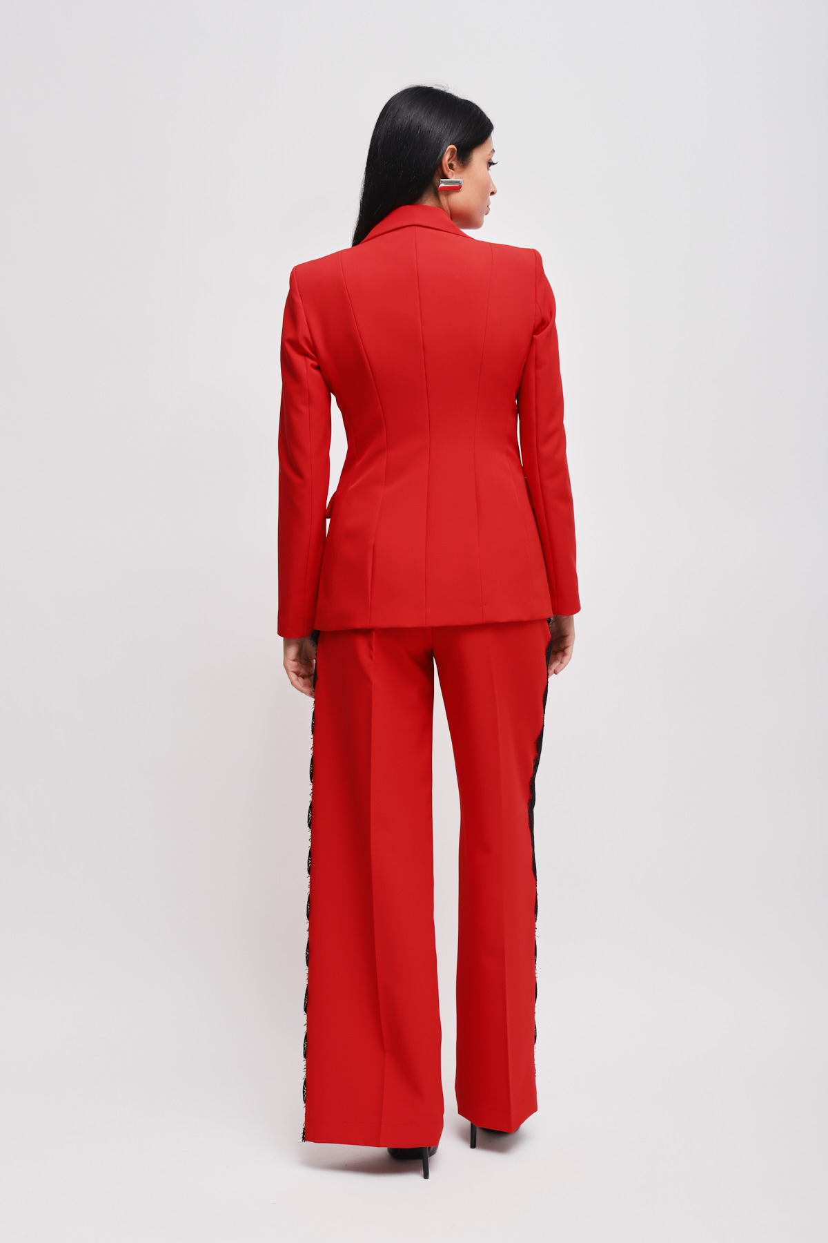 Tailleur impreziosito da inserti in pizzo, un capo perfetto per cerimonie ed eventi speciali.