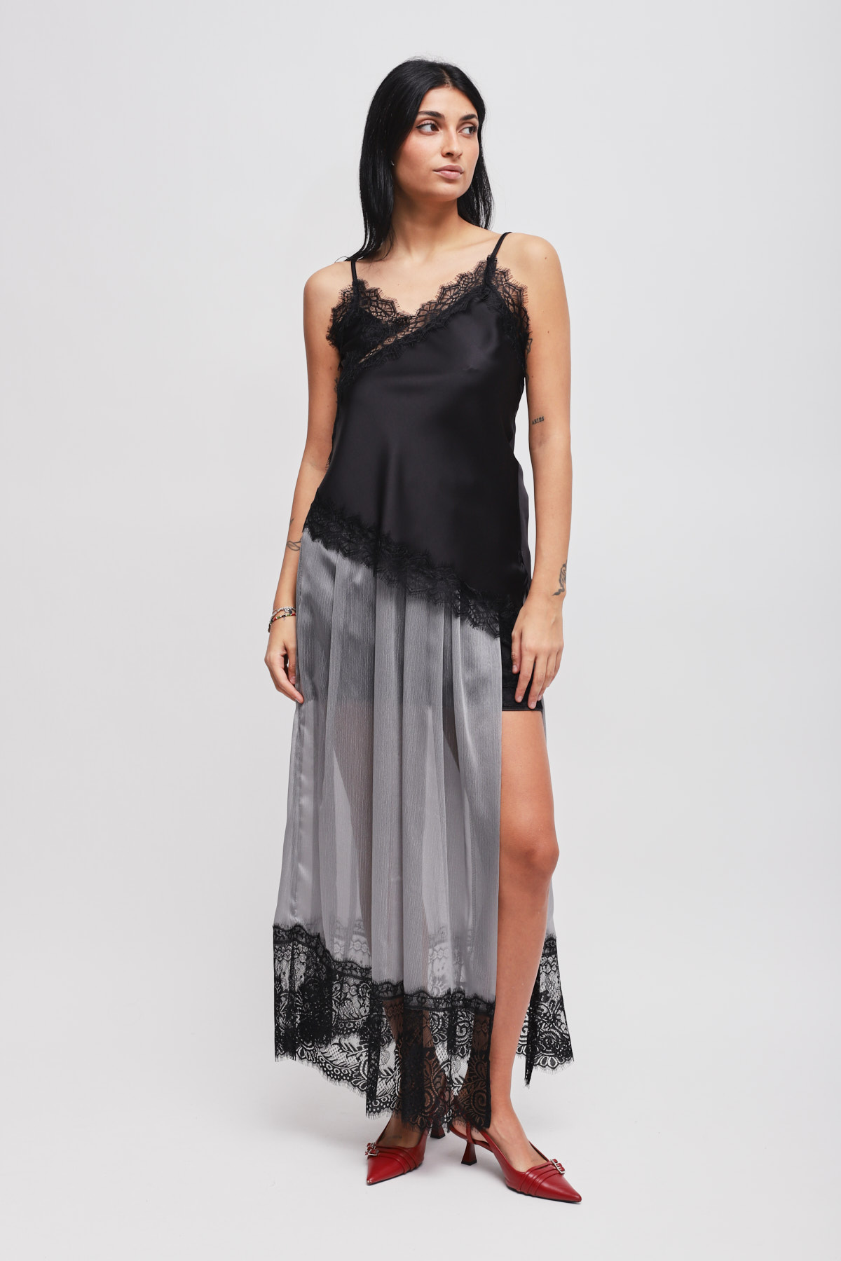 HOME > ABBIGLIAMENTO > GONNE > GONNA LUNGA CON SPACCO E INSERTO IN PIZZO