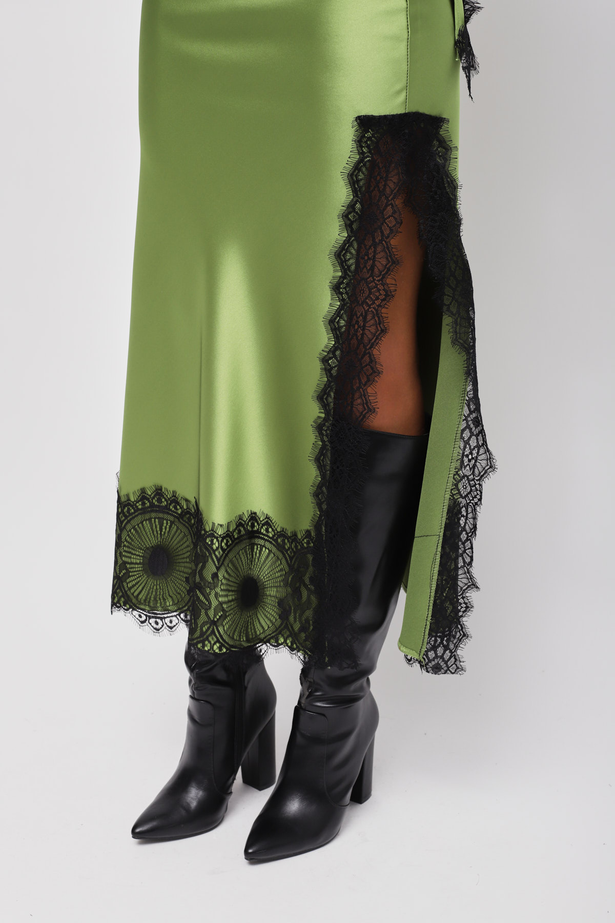 HOME > ABBIGLIAMENTO > GONNE > GONNA LUNGA IN RASO CON PIZZO