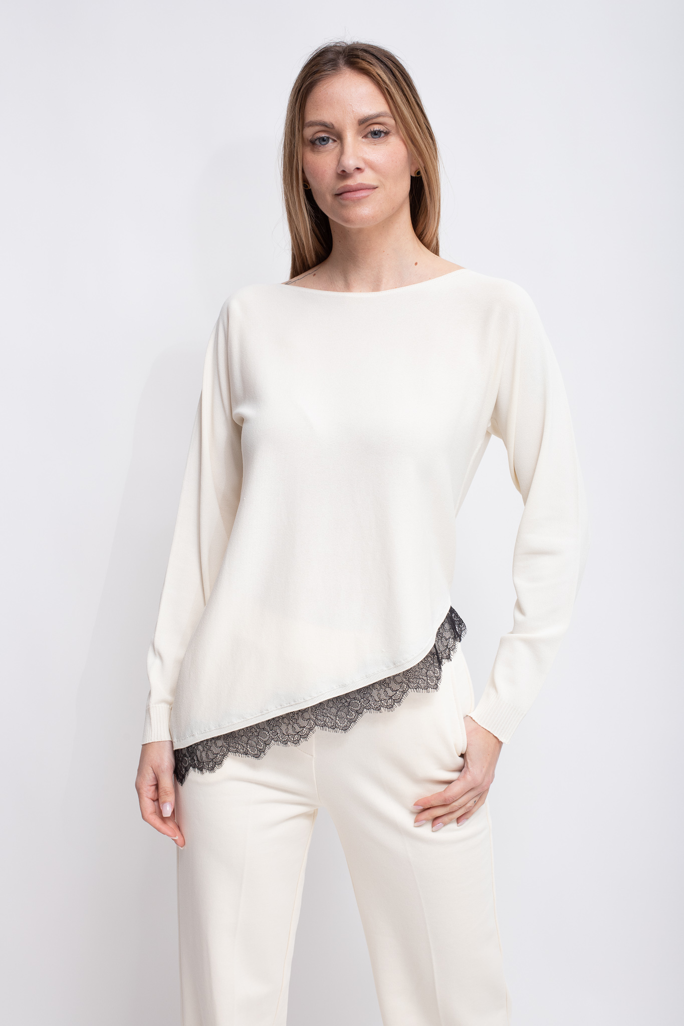 HOME > ABBIGLIAMENTO > MAGLIERIA E FELPE > MAGLIA CON FONDO ASIMMETRICO E PIZZO