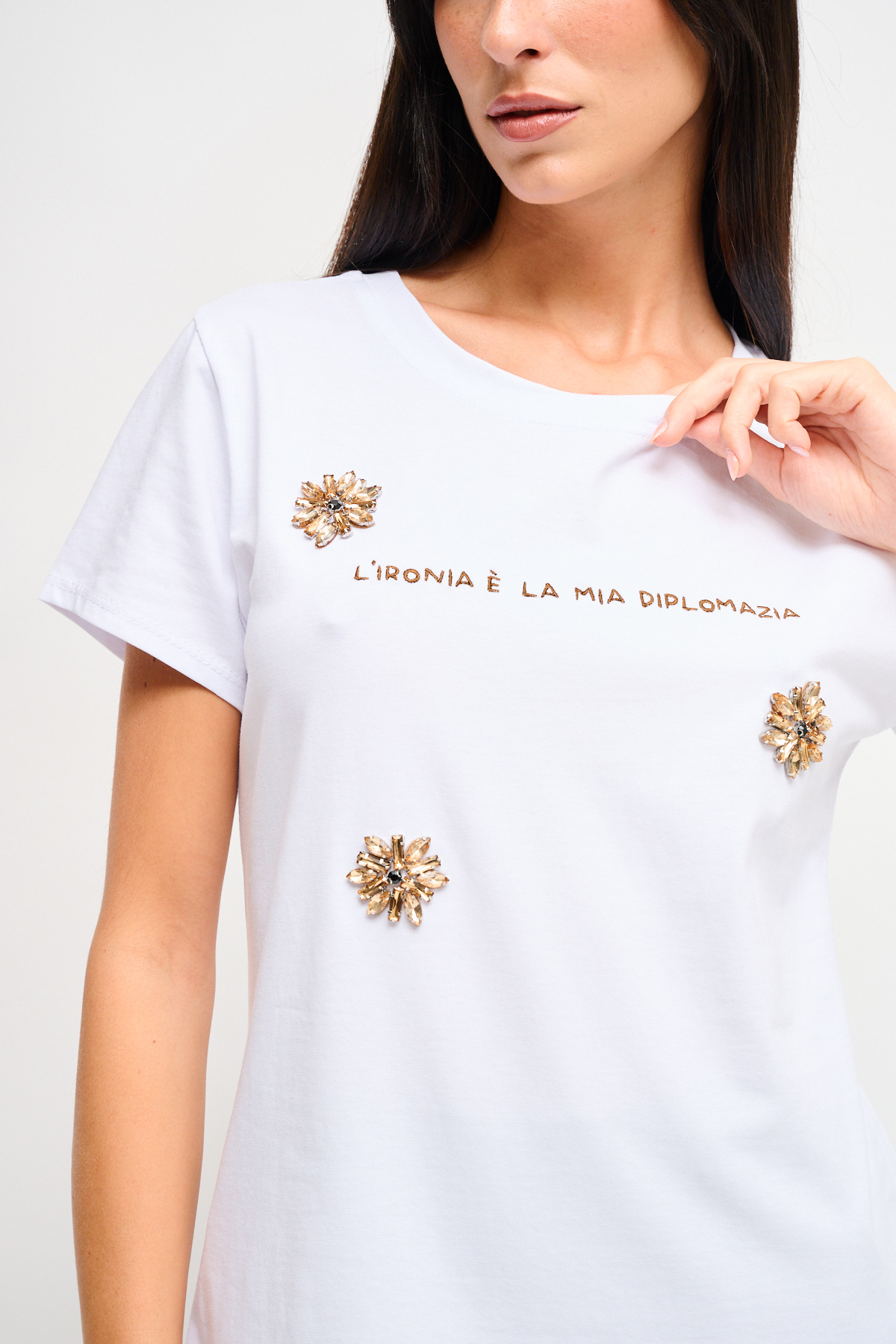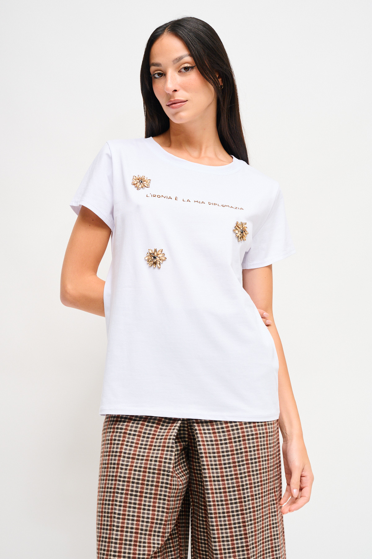 HOME > ABBIGLIAMENTO > TOP E T-SHIRT > T-SHIRT CON RICAMO E APPLICAZIONI GIOIELLO